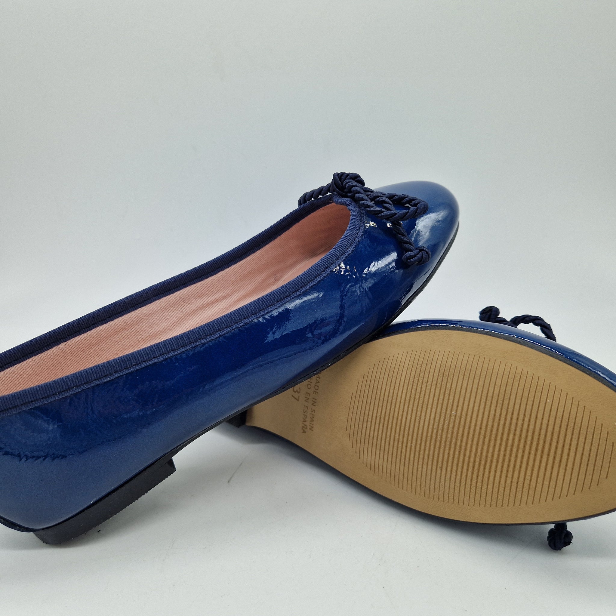 BAILARINA DE LAZO GRUESO EN CHAROL AZUL