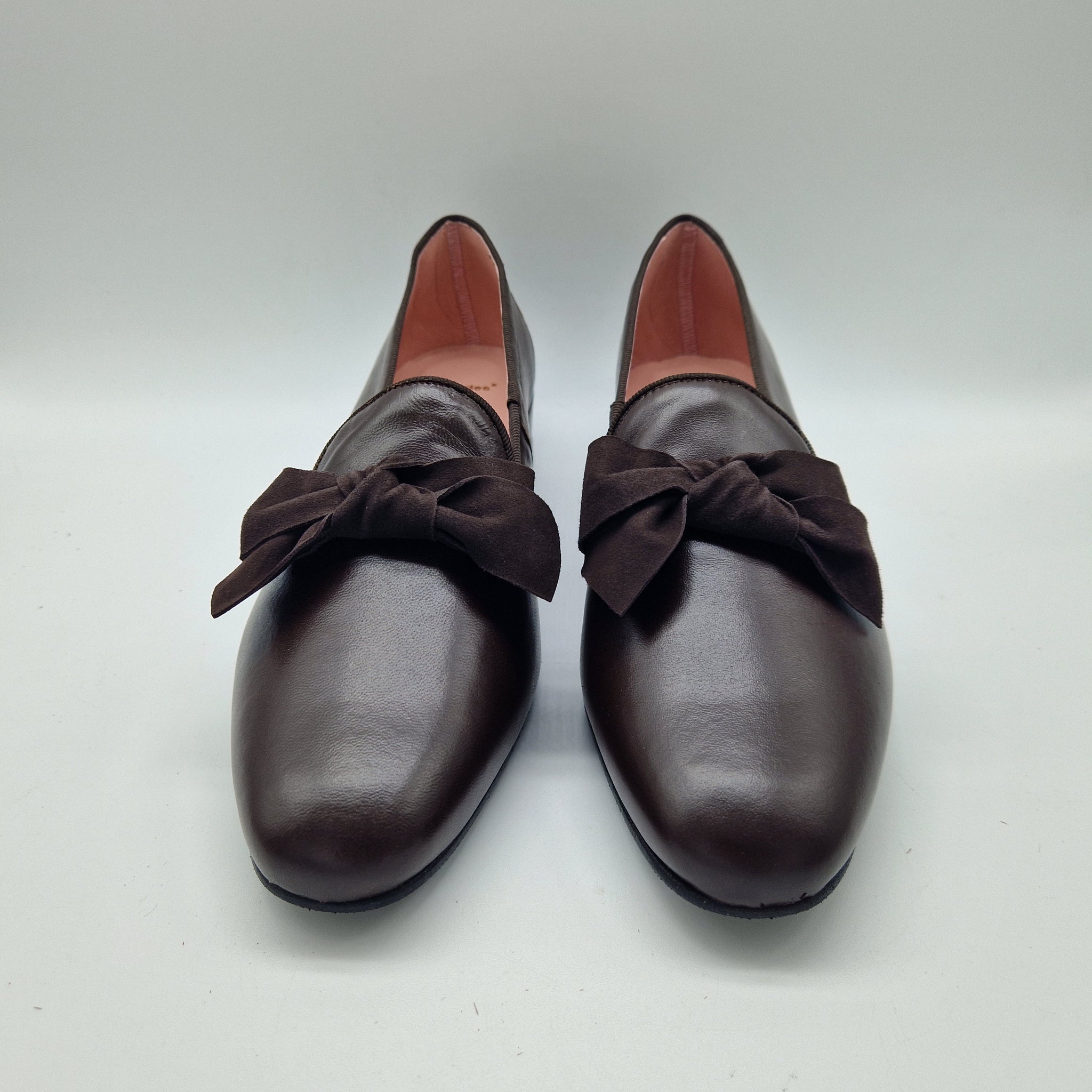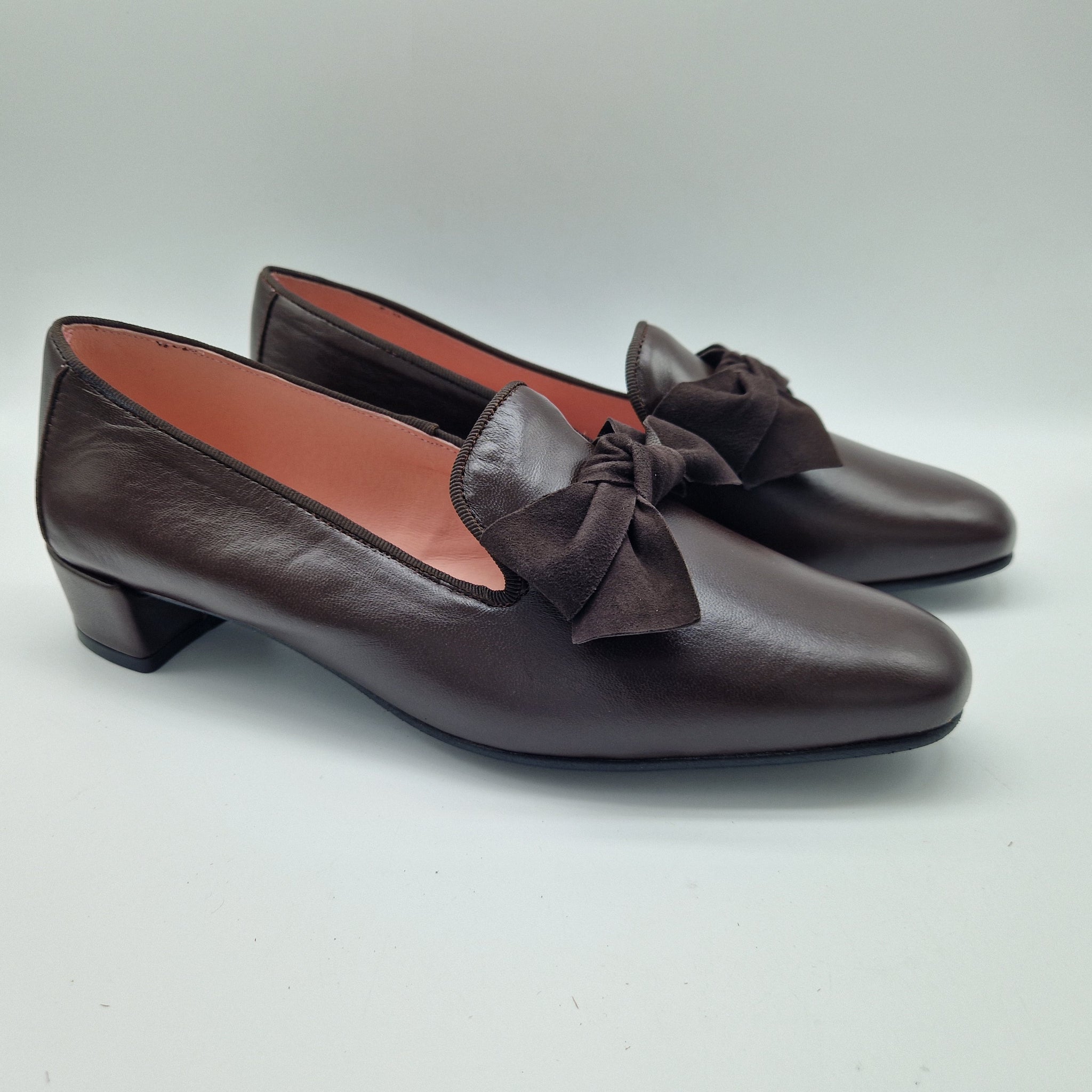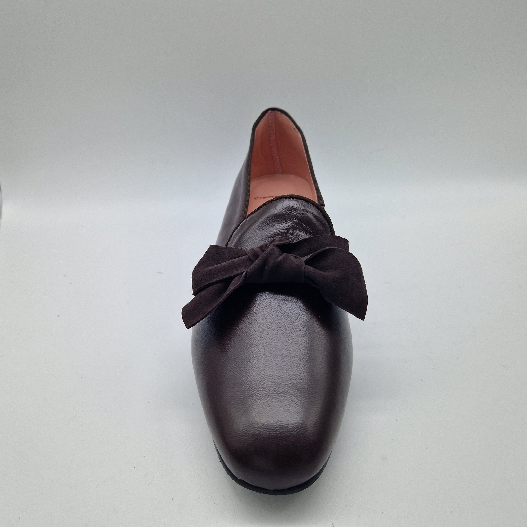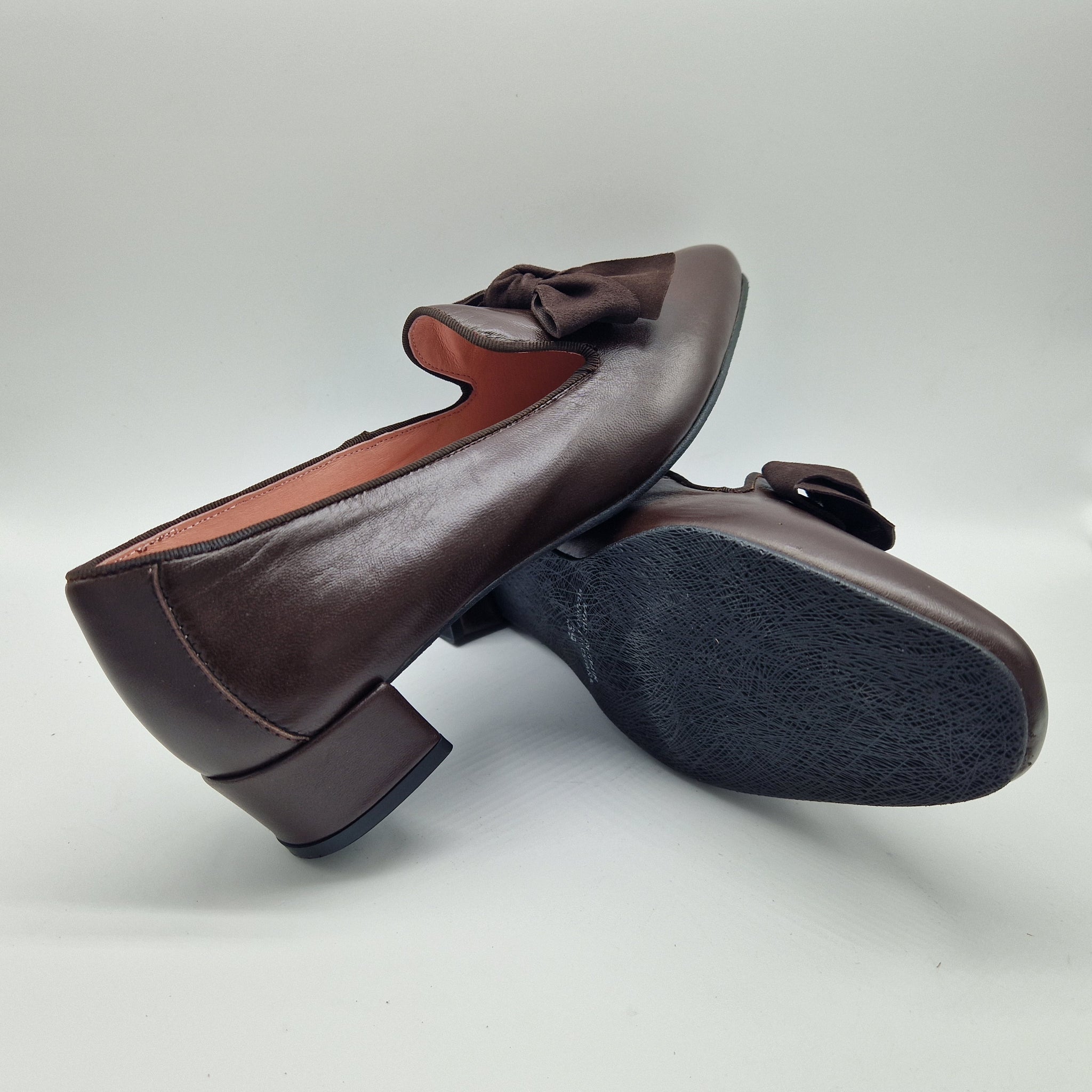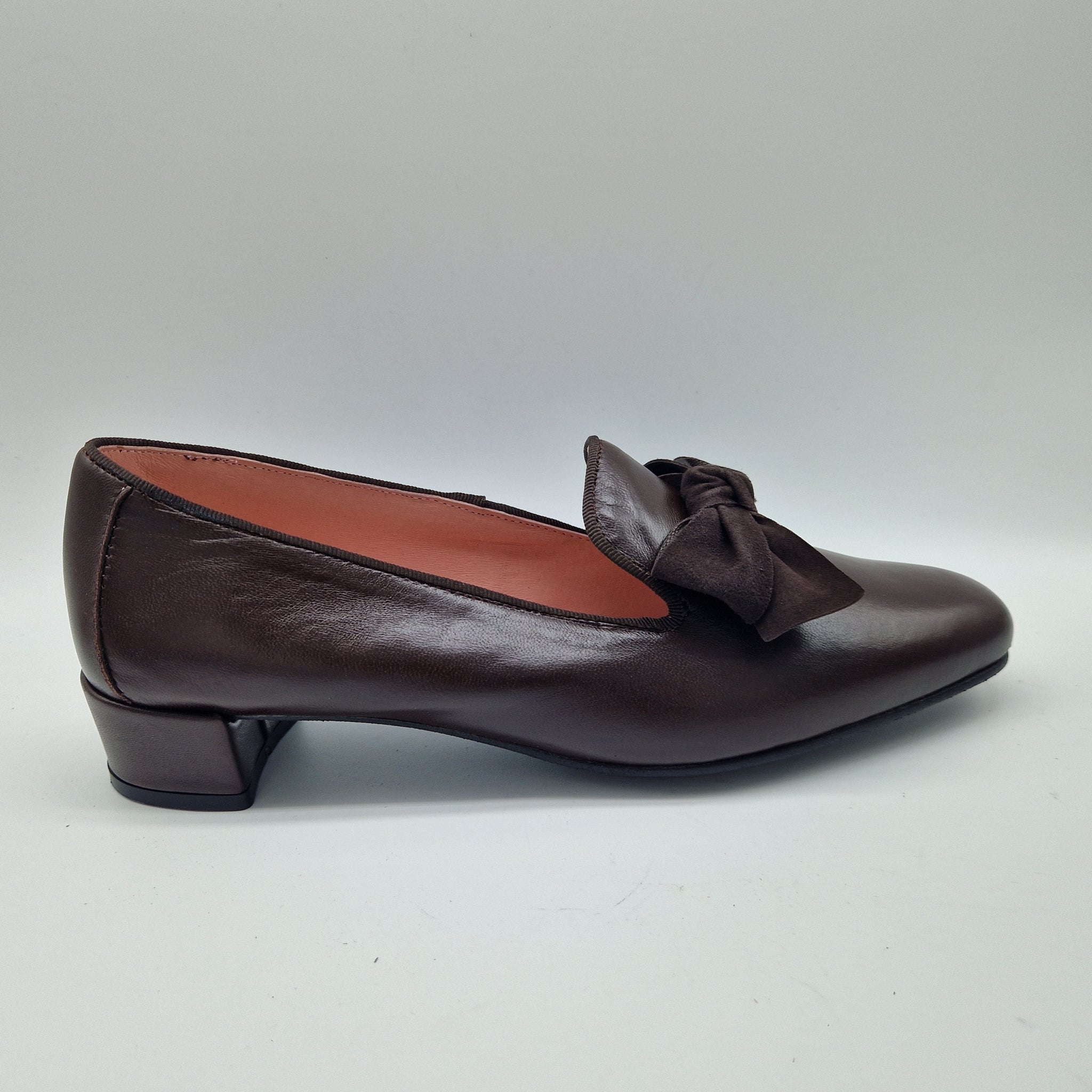 COPETE CON TACÓN Y LAZO EN PIEL MARRÓN