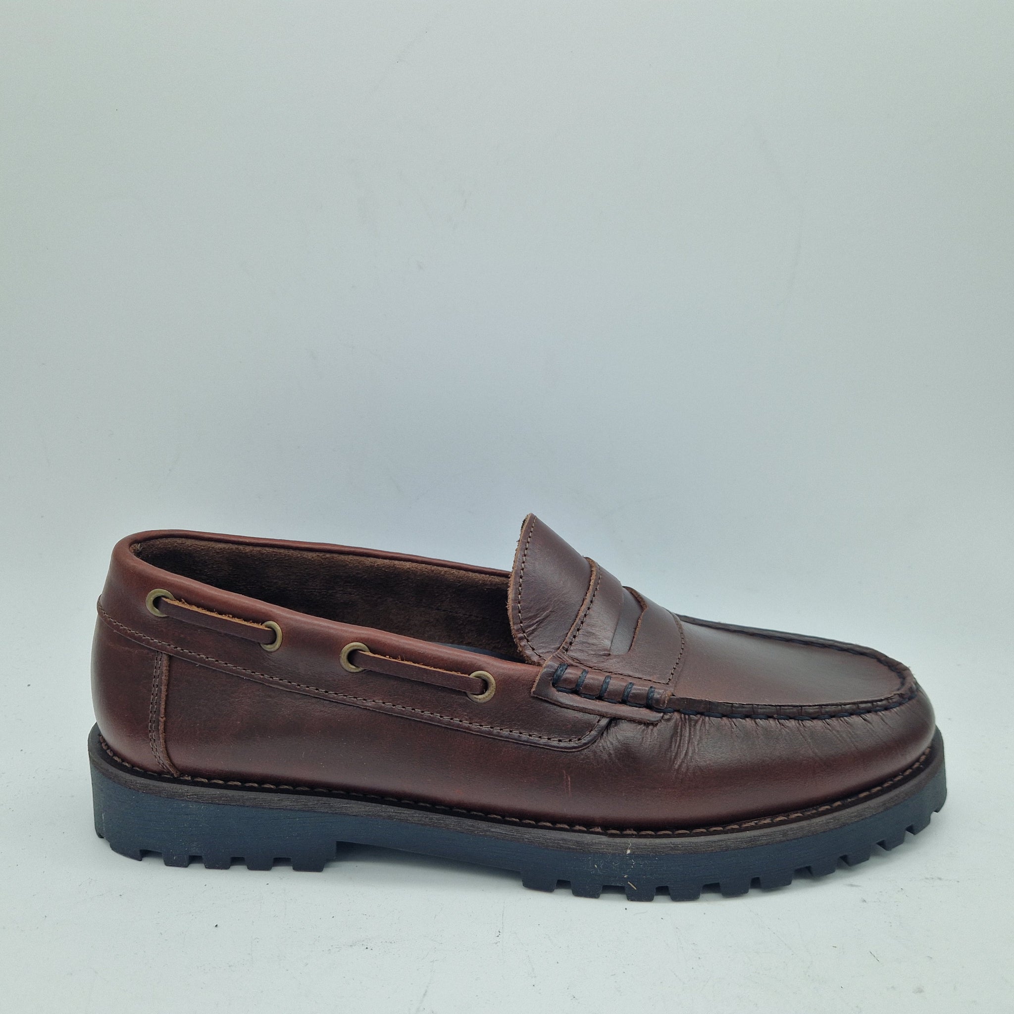 MOCASÍN DE ANTIFAZ EN PIEL ENGRASADA BURDEOS Y PISO DE GOMA