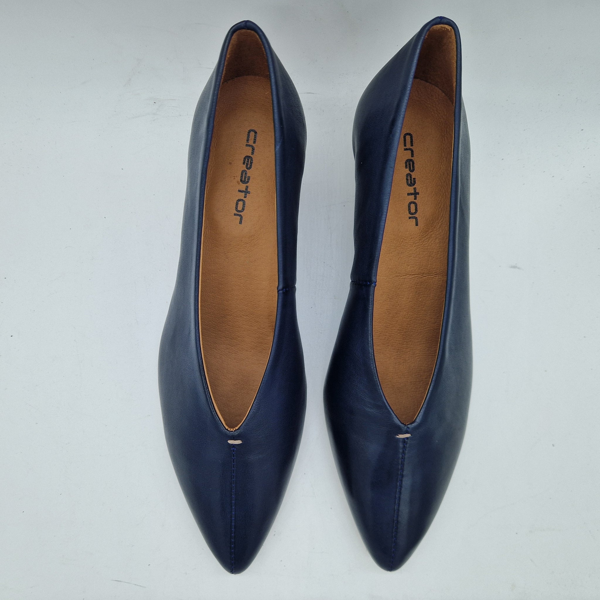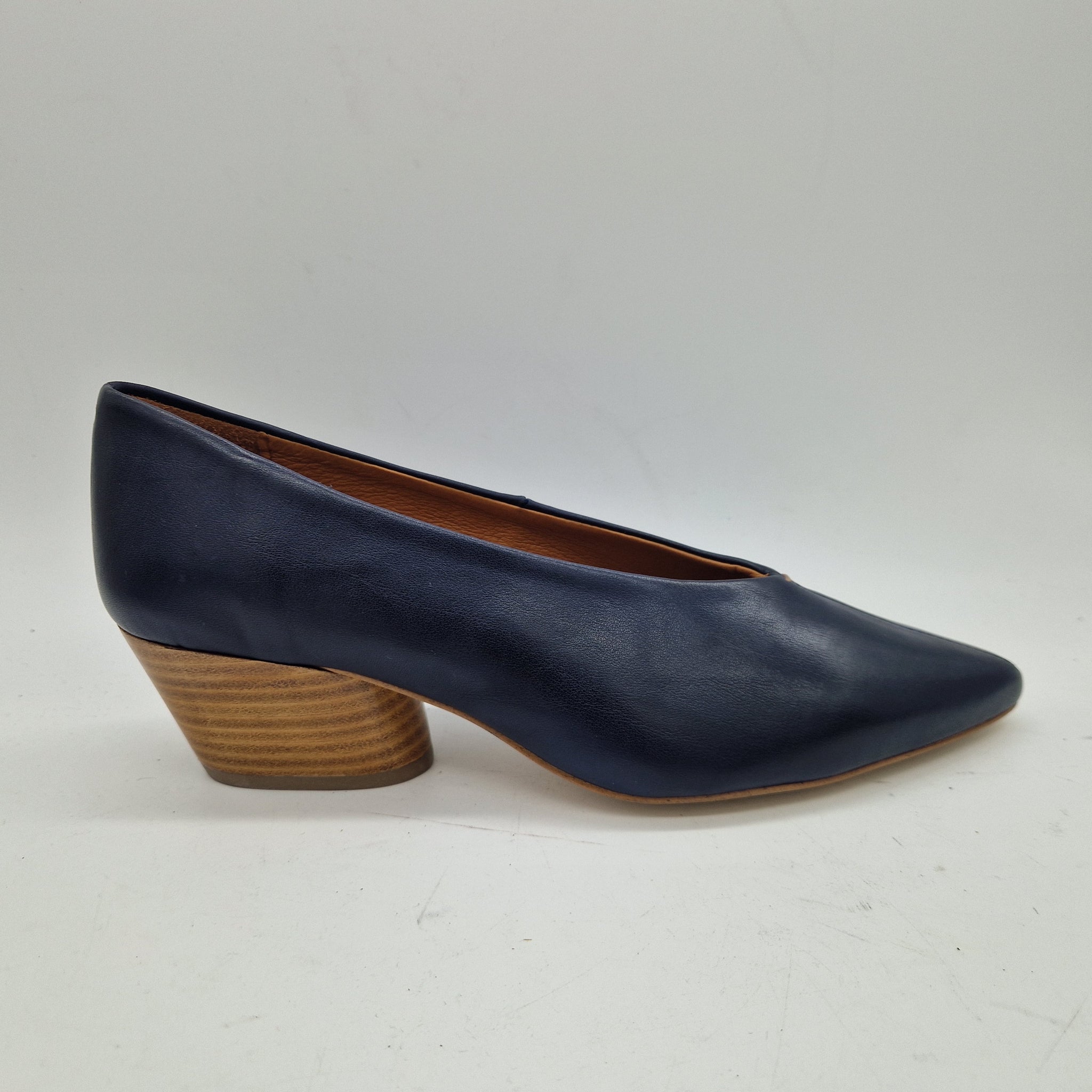 SALÓN EN PIEL MARINO Y TACÓN ACUBANADO
