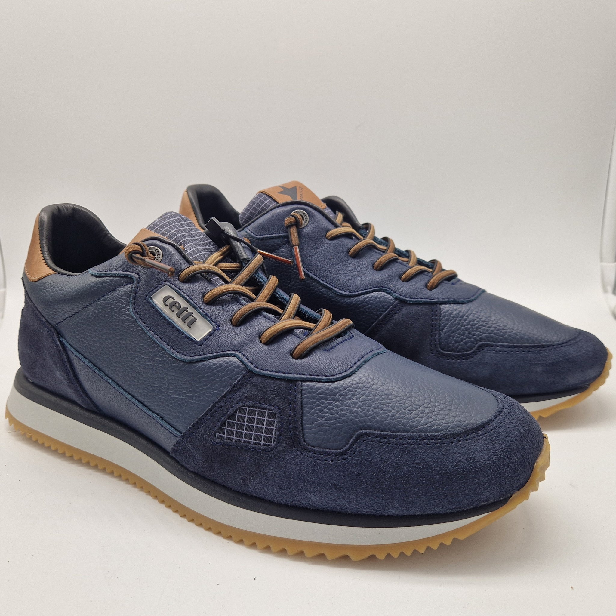 DEPORTIVO CON CORDÓN DE GOMAS EN PIELES MARINO