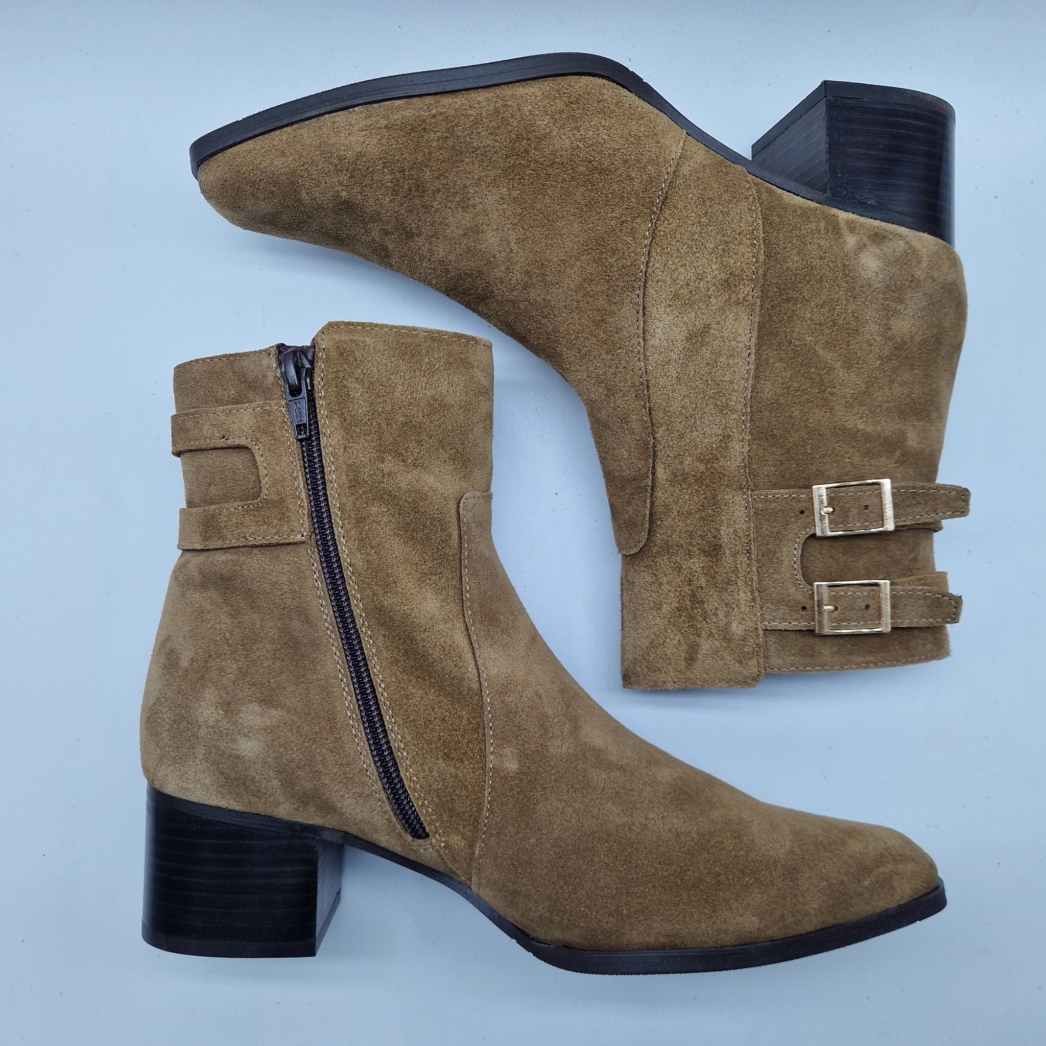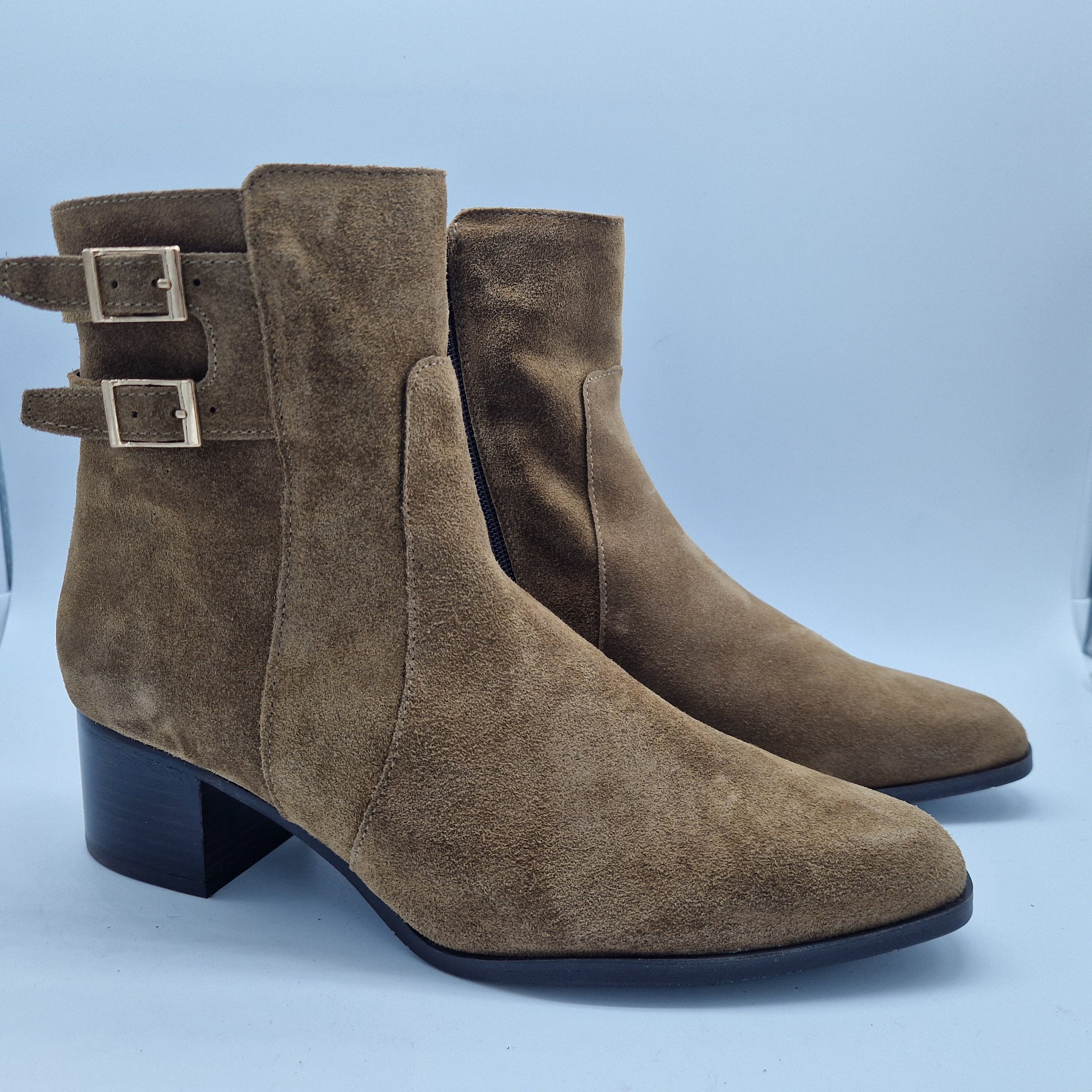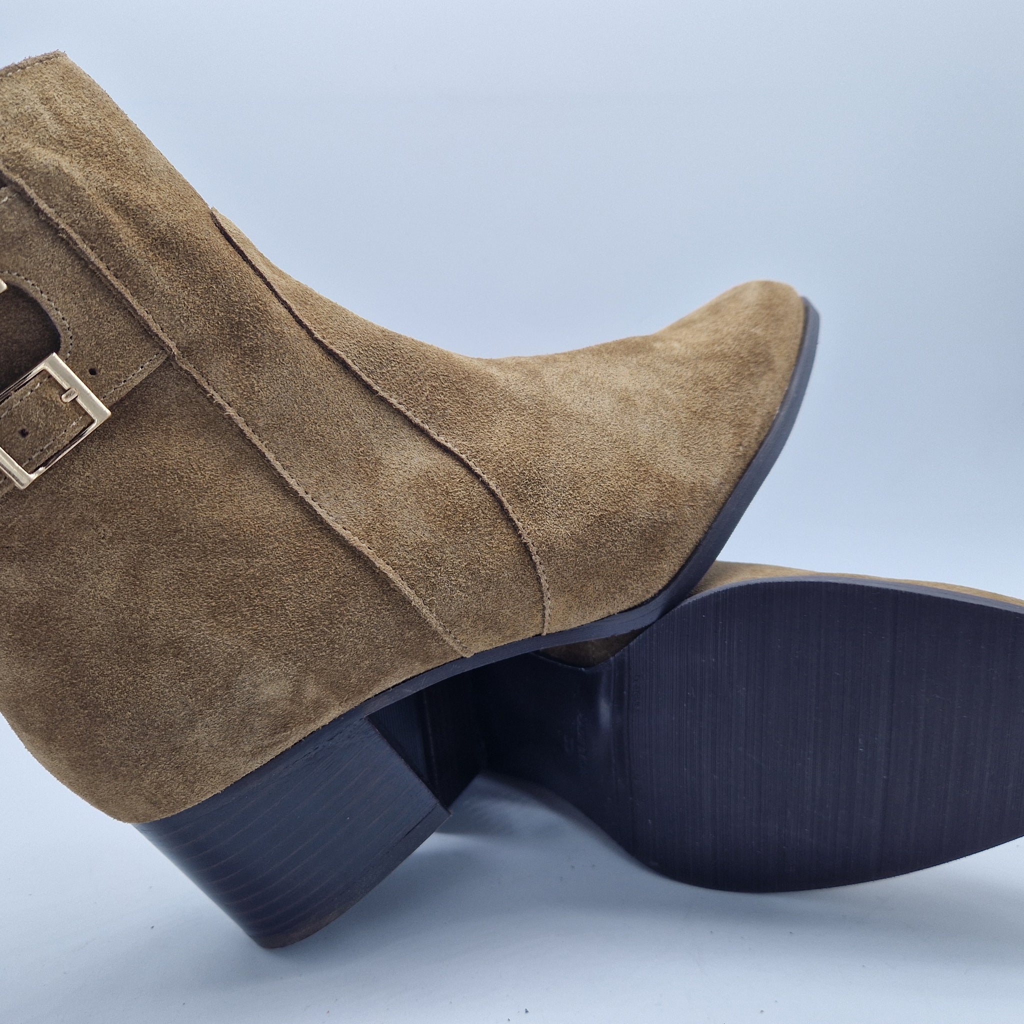 BOTÍN CON 2 HEBILLAS EN SERRAJE CUERO