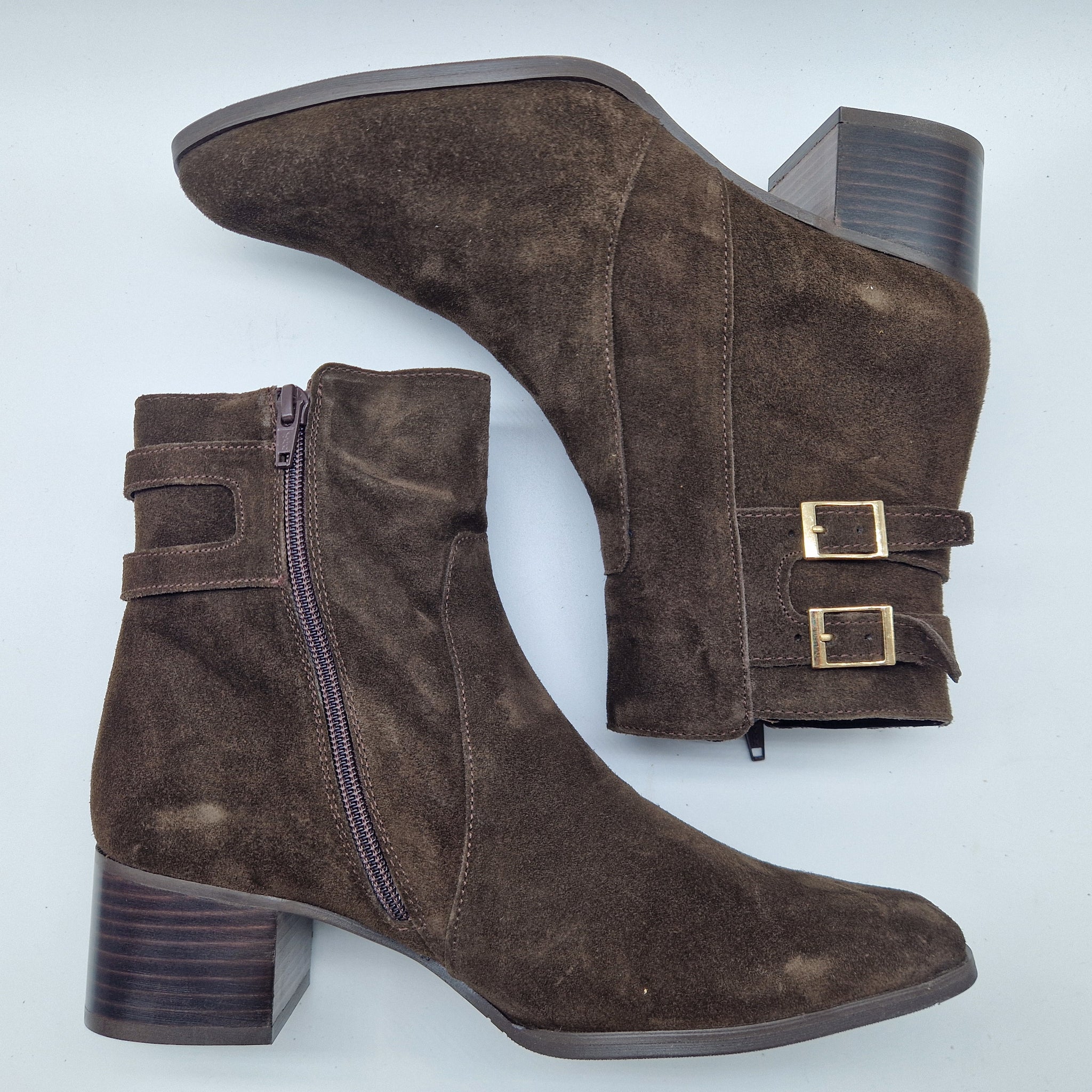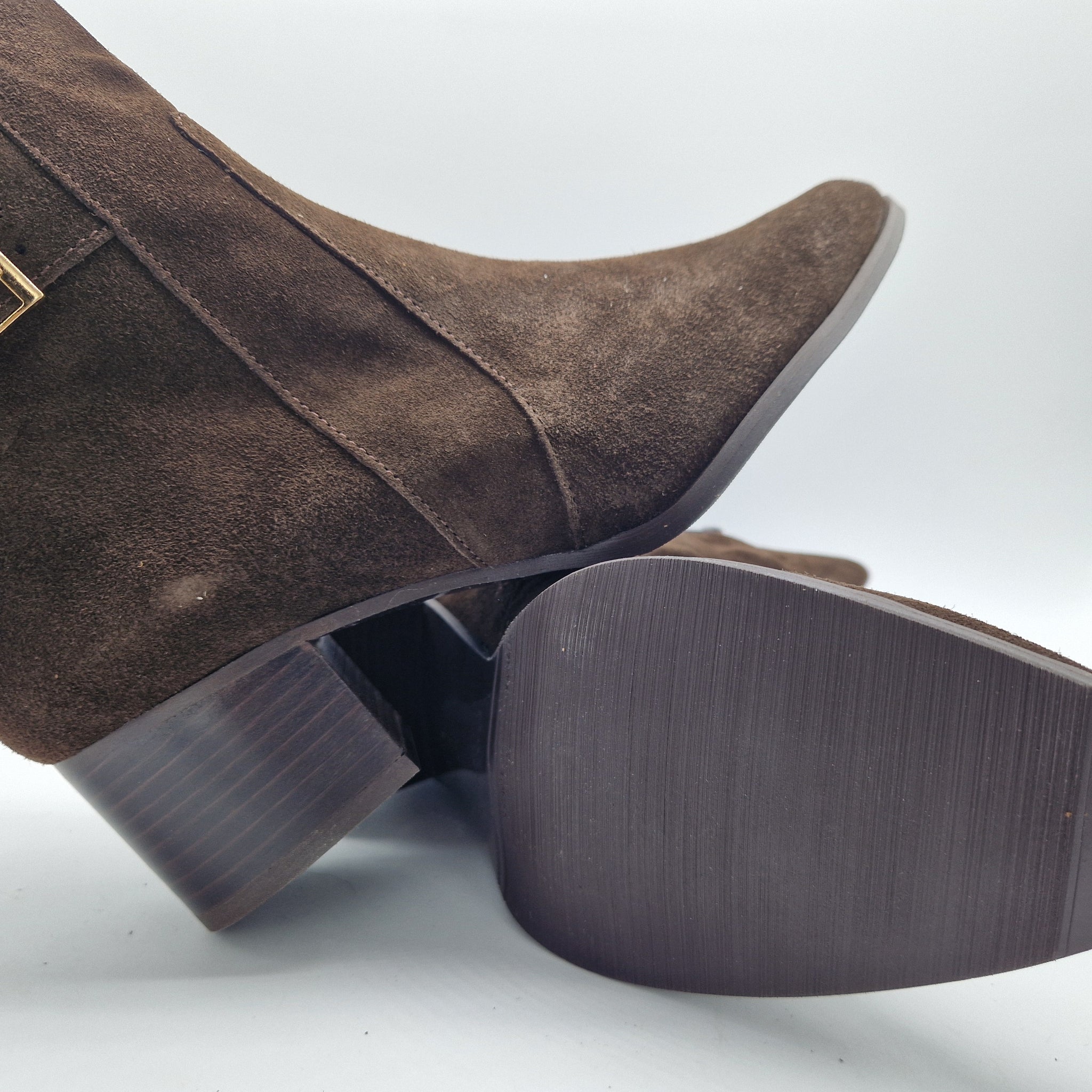 BOTÍN CON 2 HEBILLAS EN SERRAJE MARRÓN