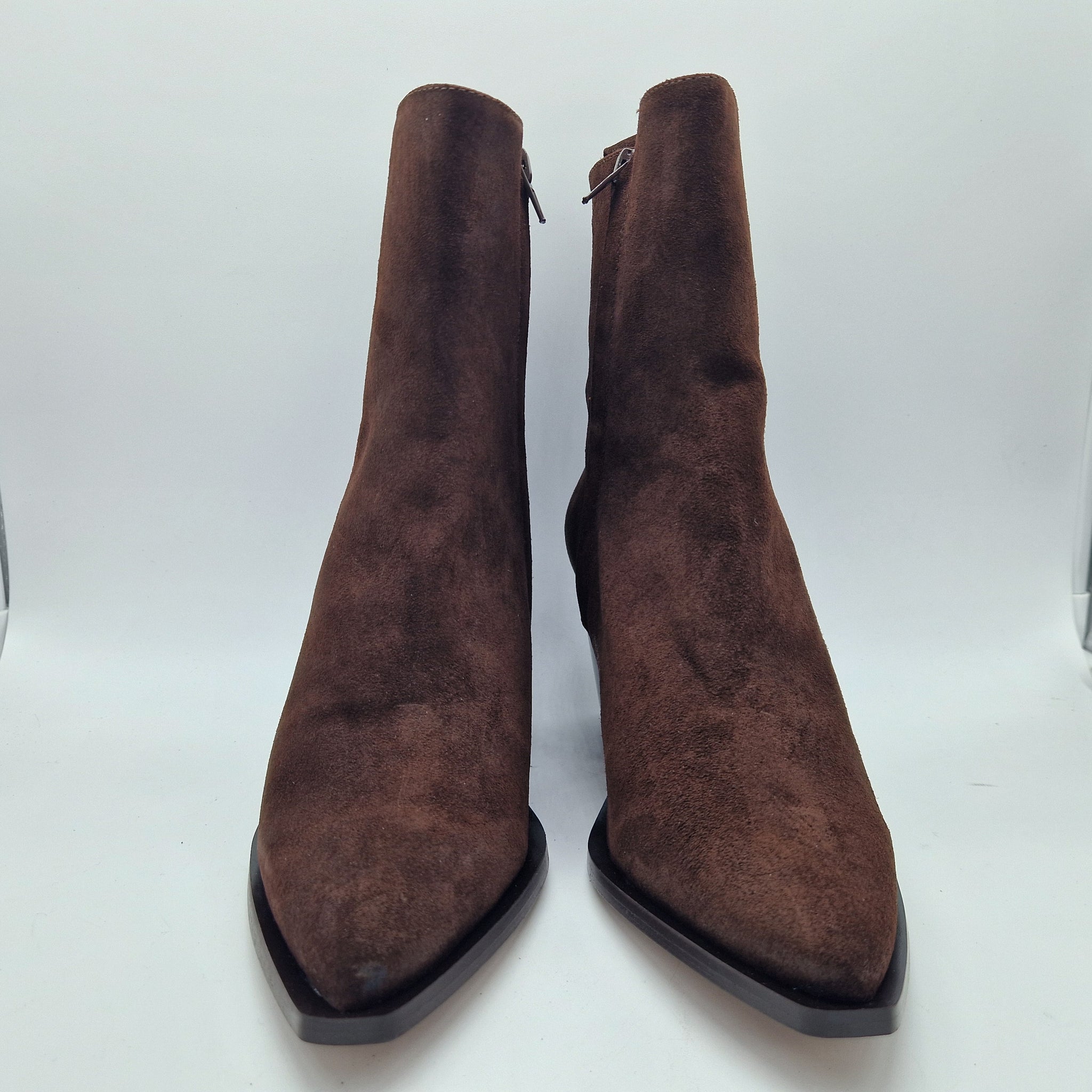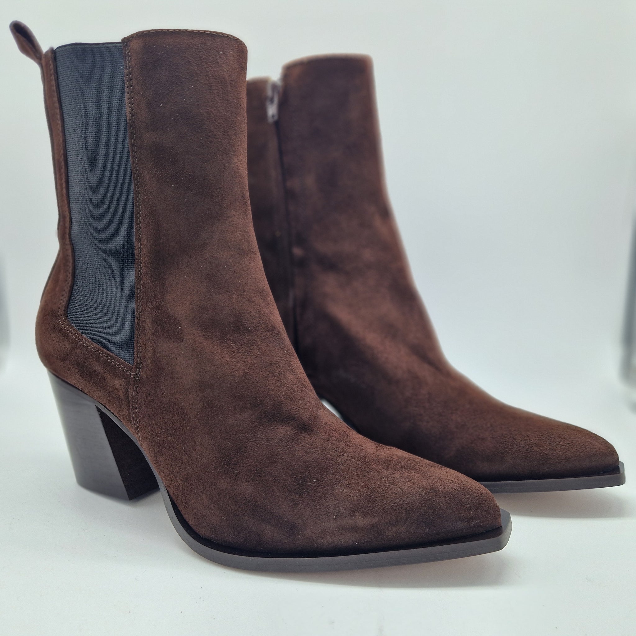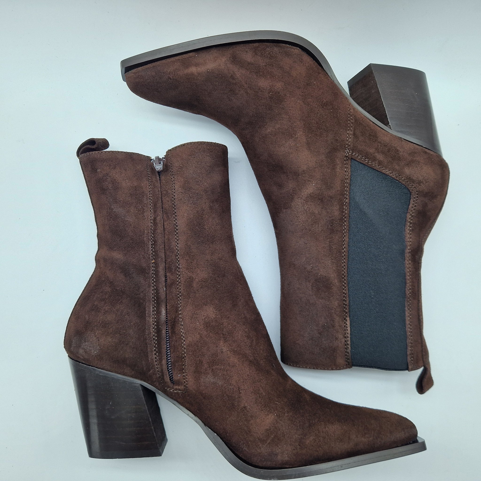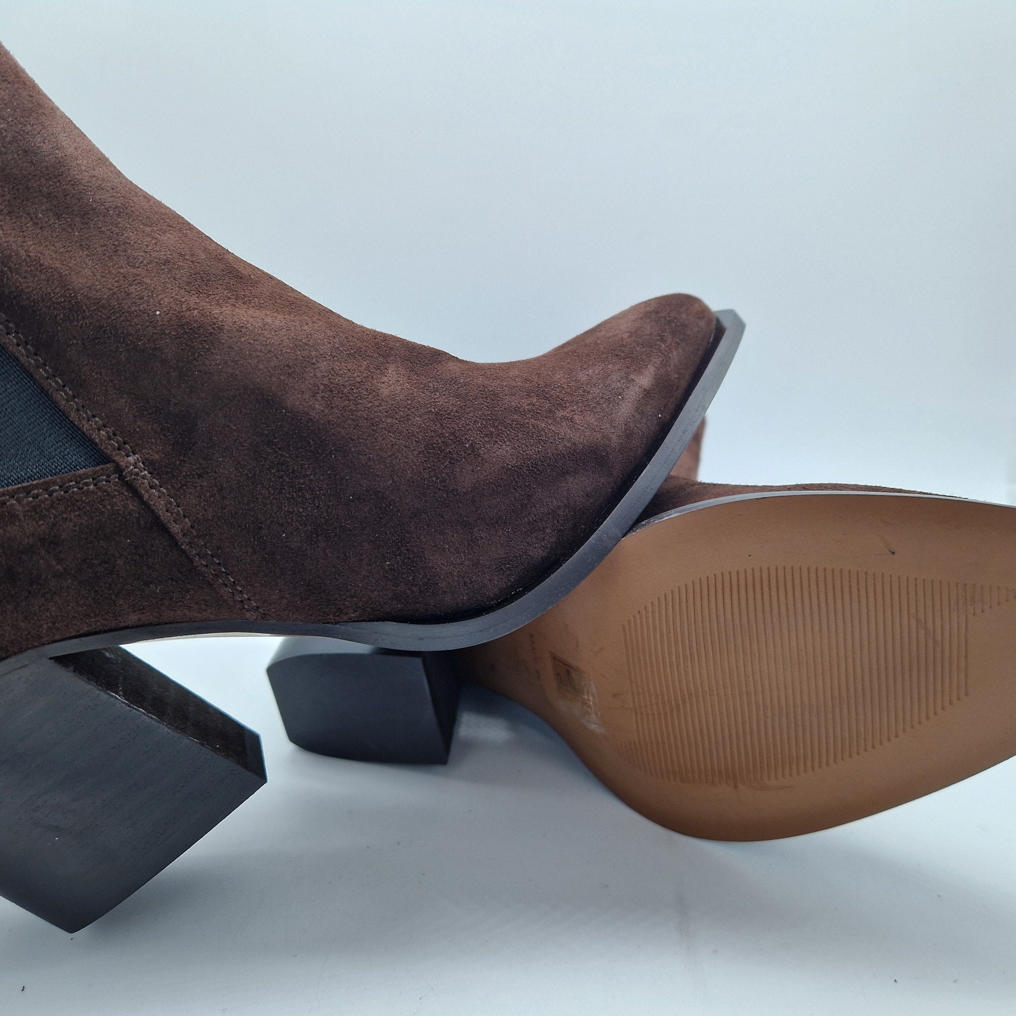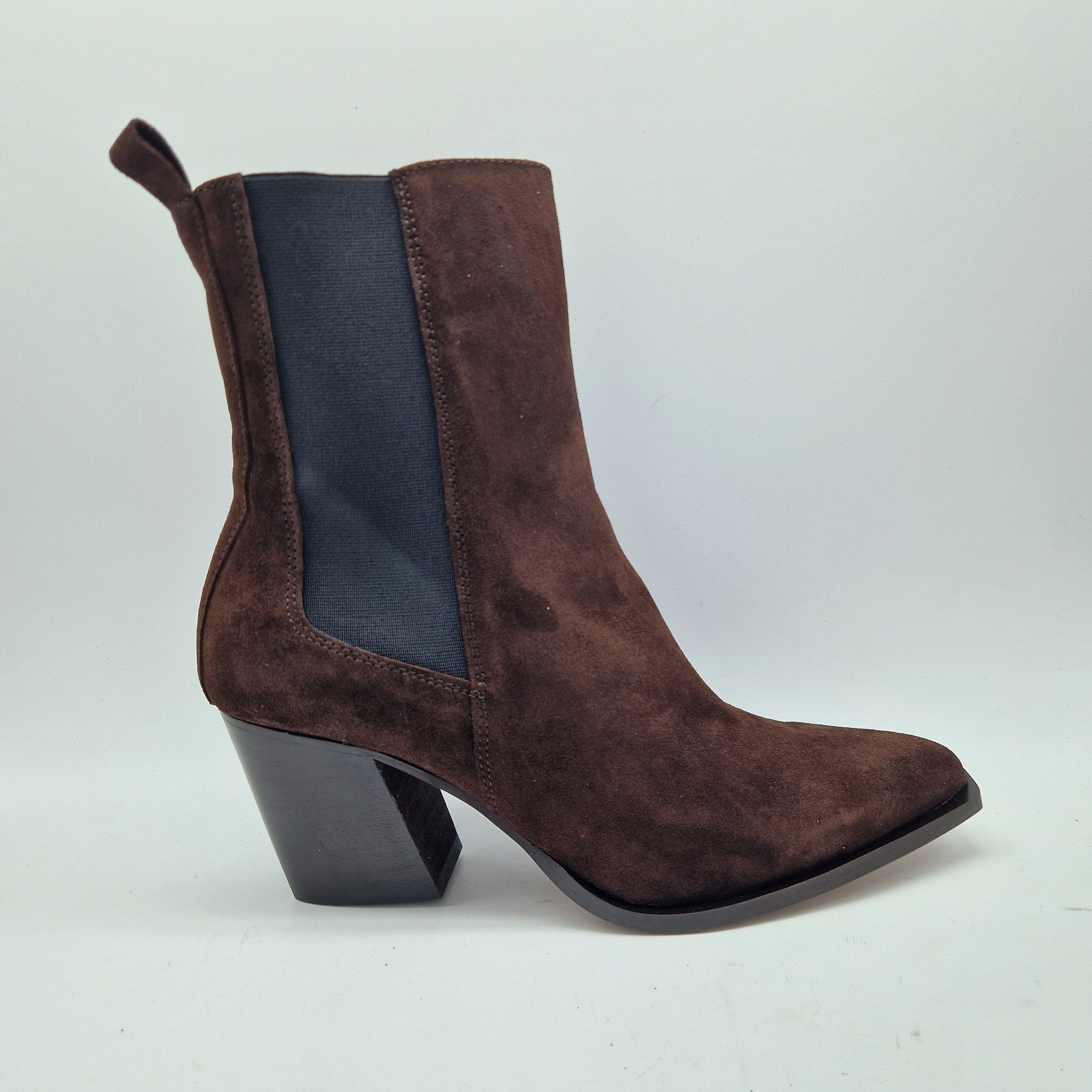 BOTÍN CON ELÁSTICO Y CREMALLERA EN SERRAJE MARRÓN