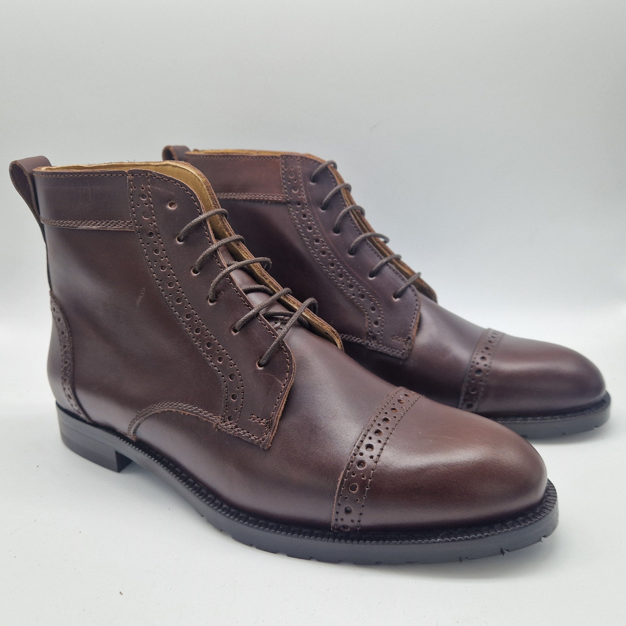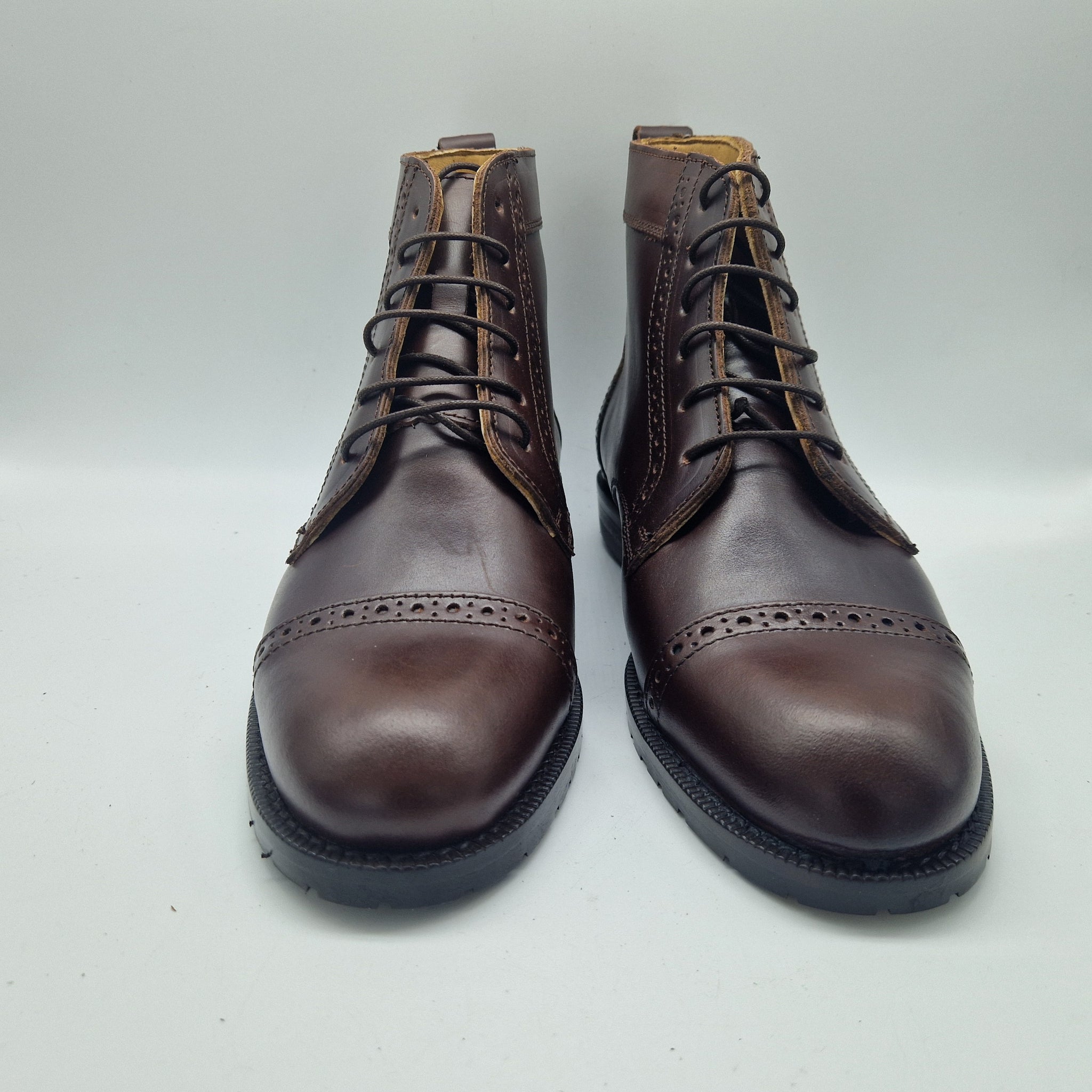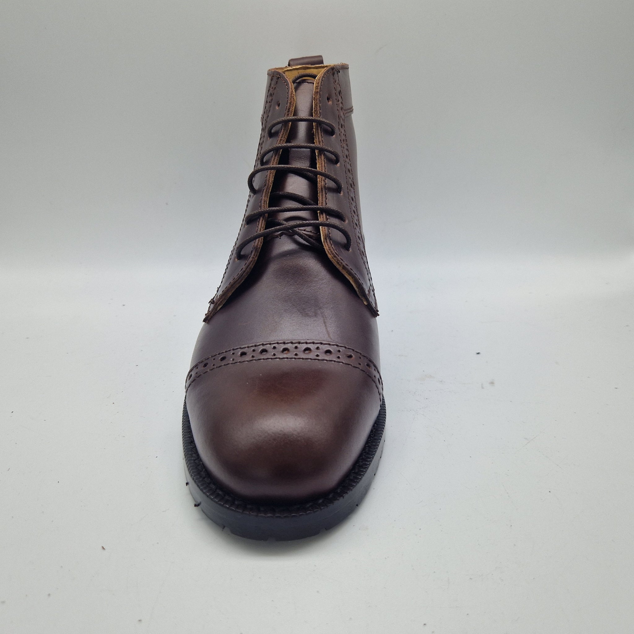 BOTITA CON PUNTERA RECTA Y CORDONES EN PIEL ENGRASADA MARRÓN