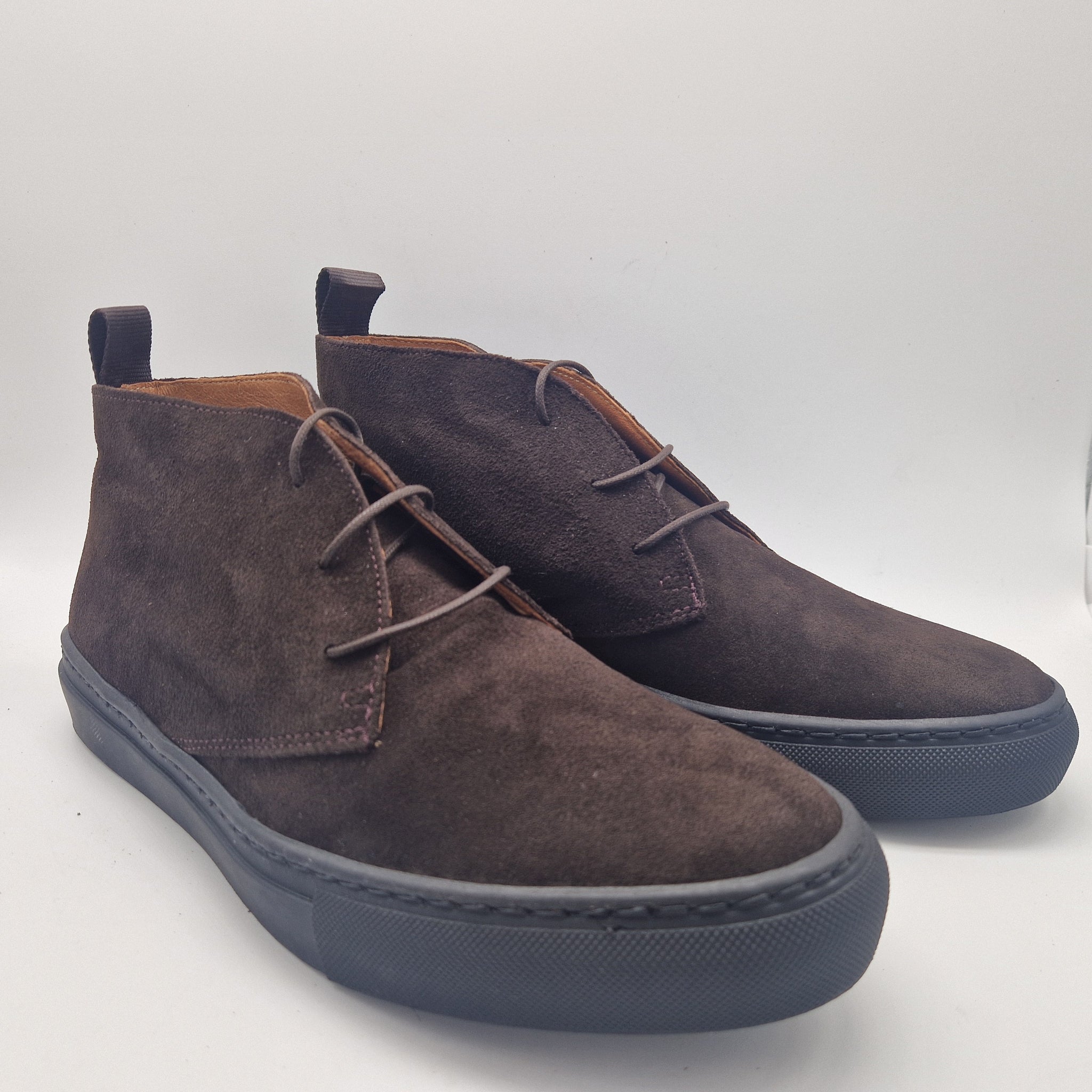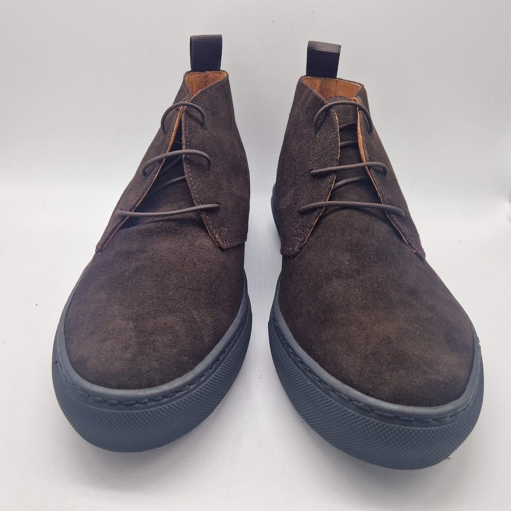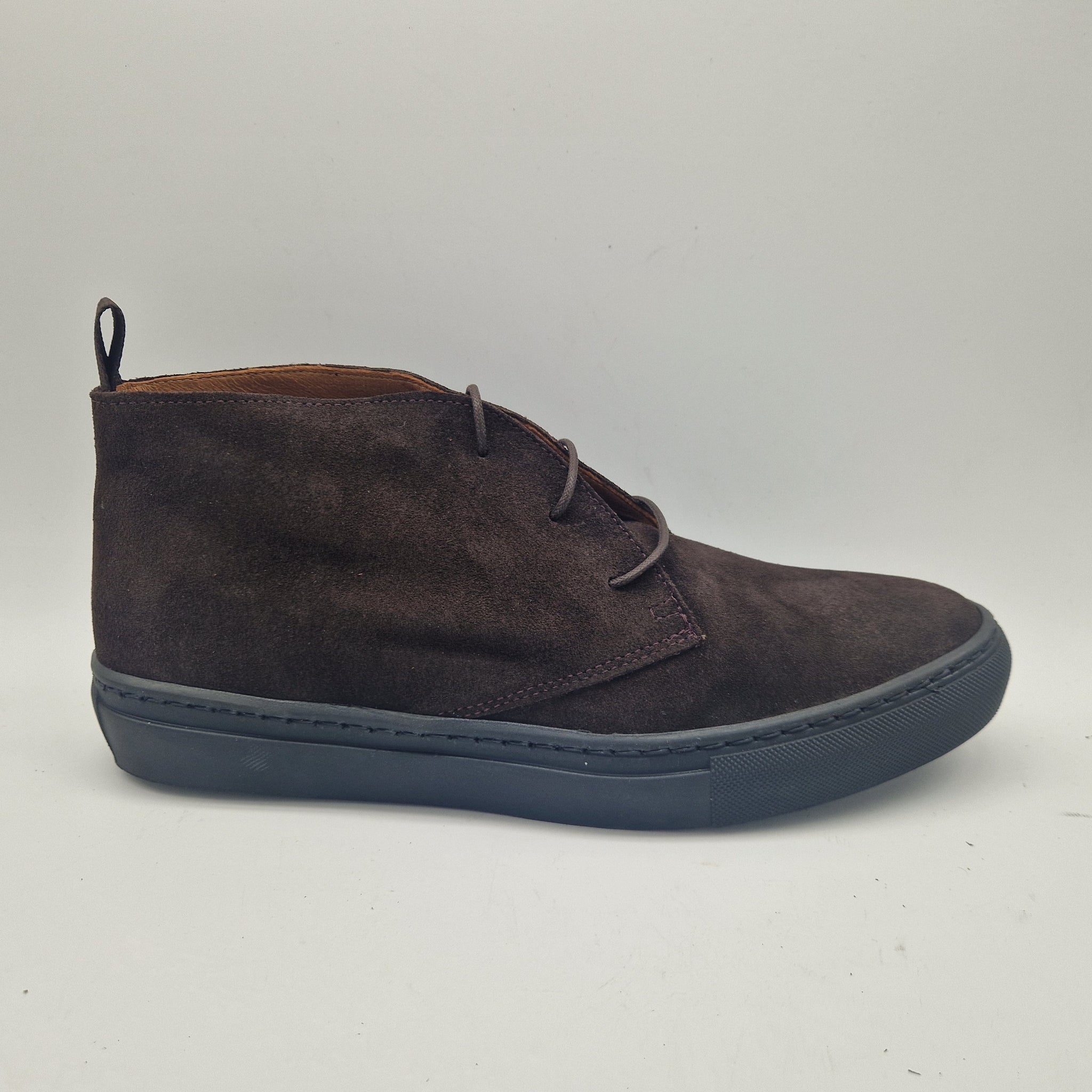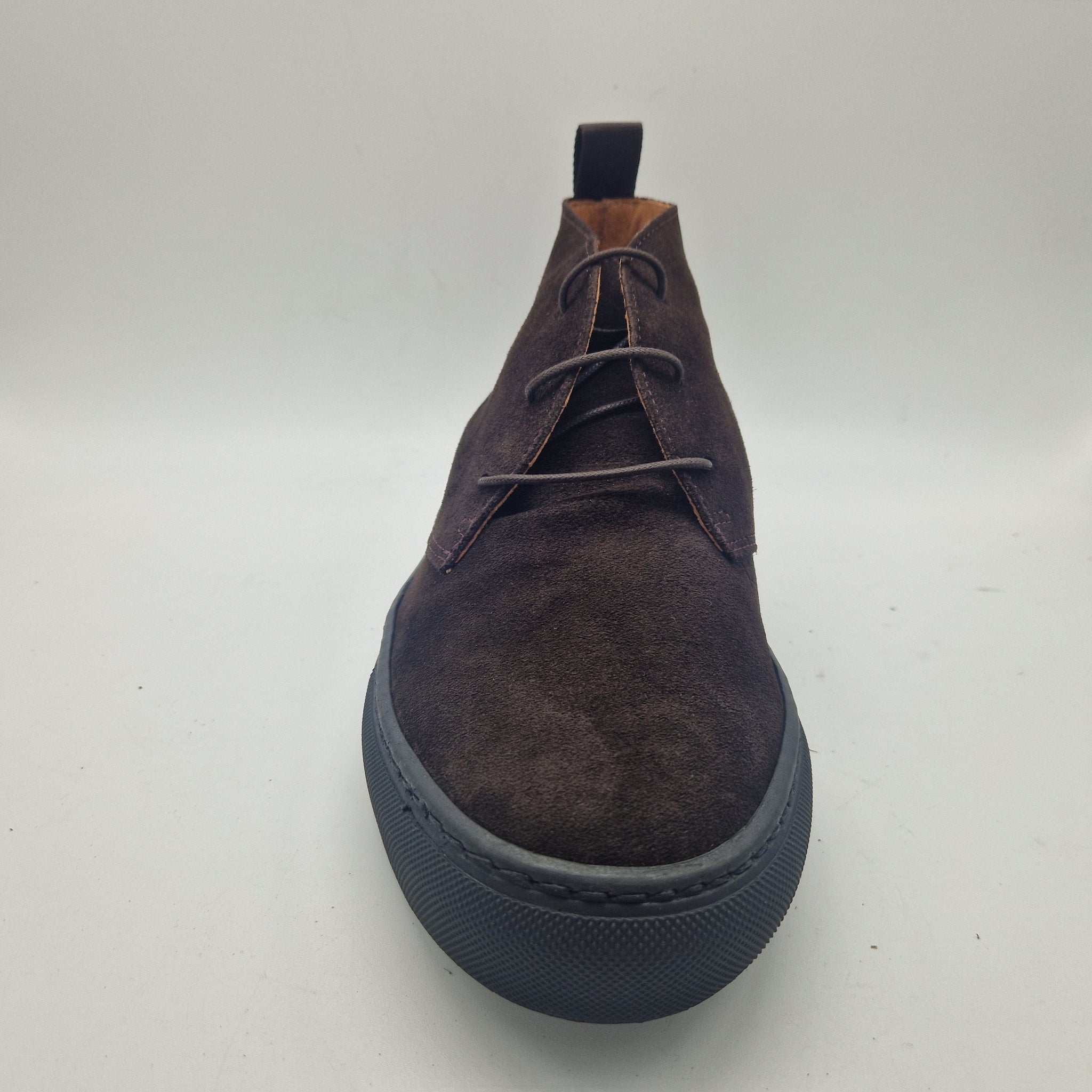 BOTÍN DE CORDONES Y PISO DE GOMA EN SERRAJE MARRÓN