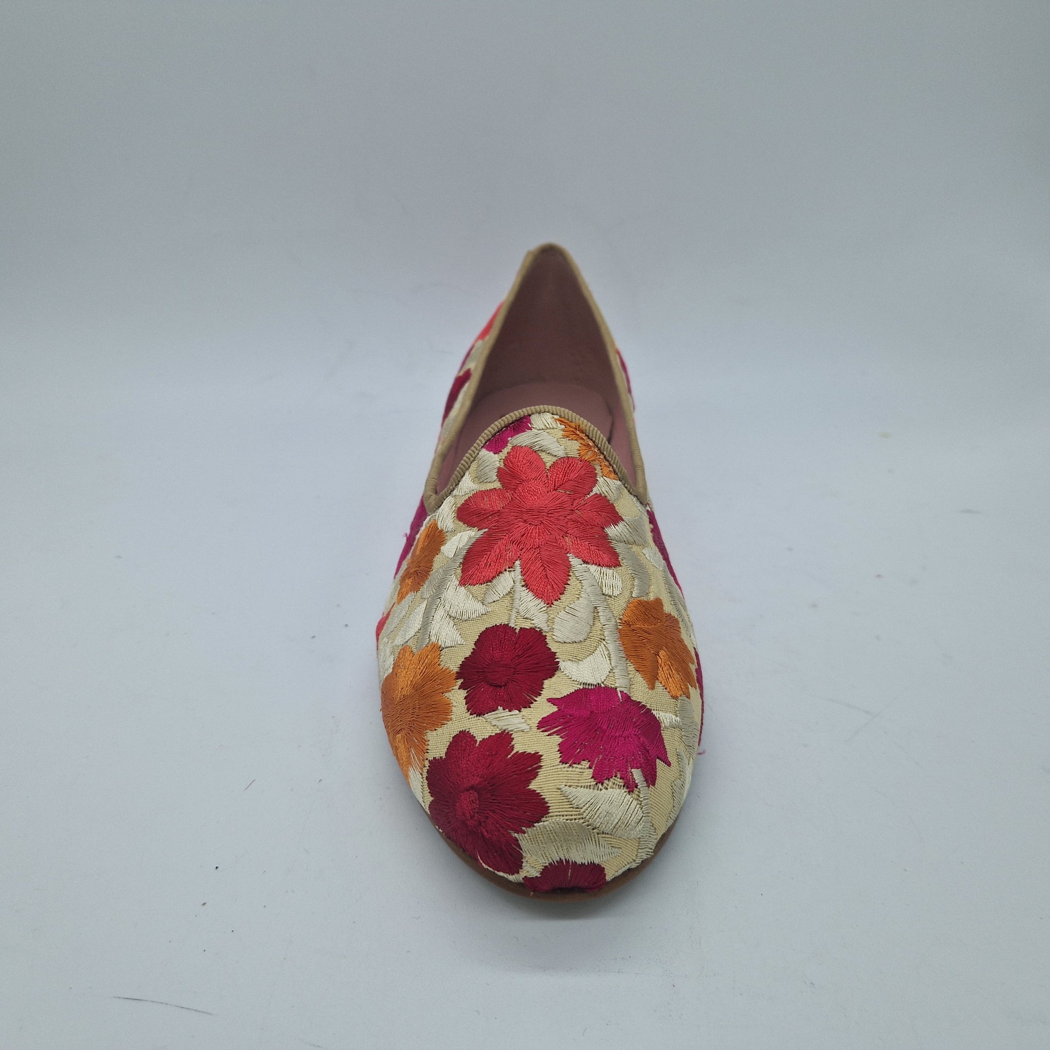 COPETE CORTO CON FLORES BORDADAS EN TONOS BEIGE