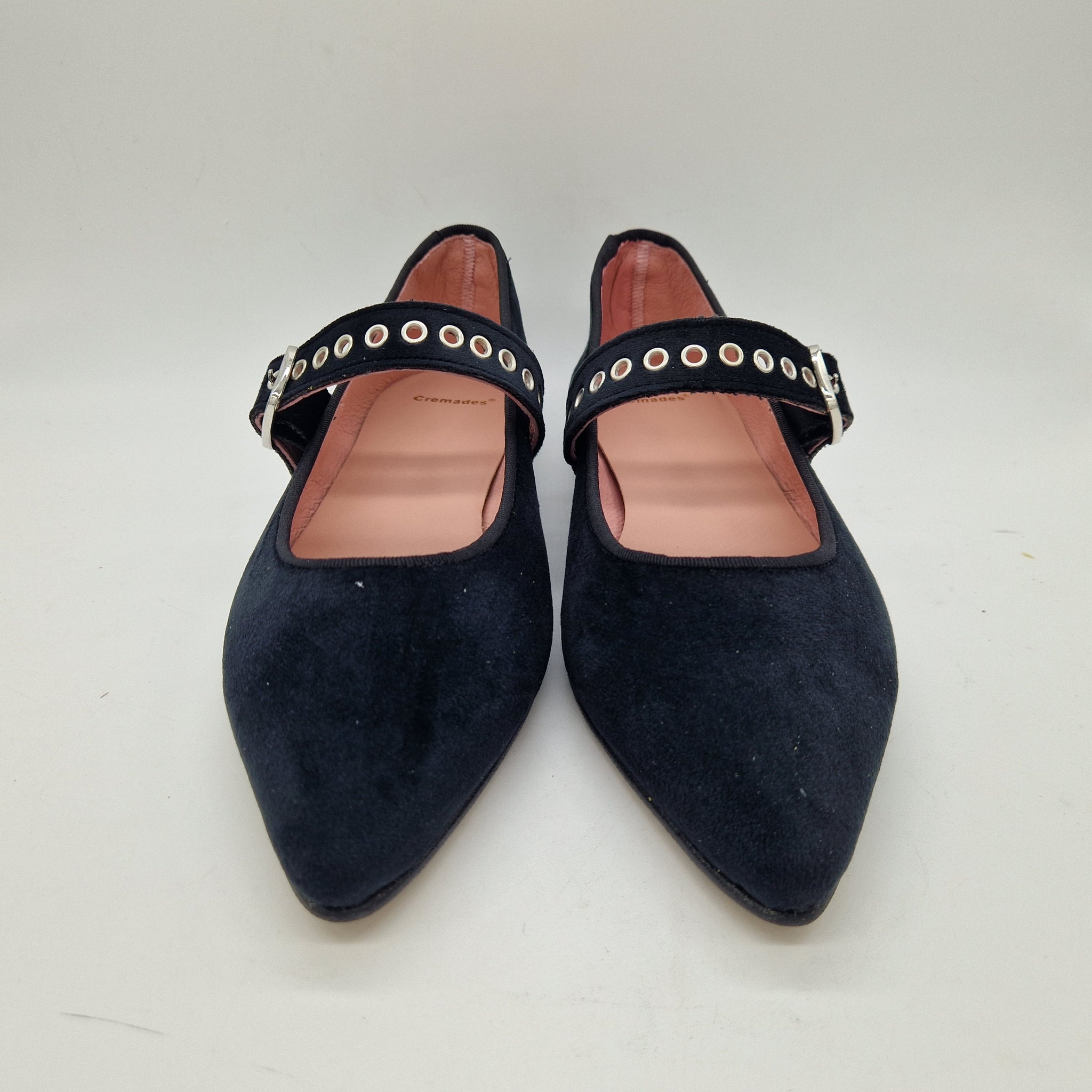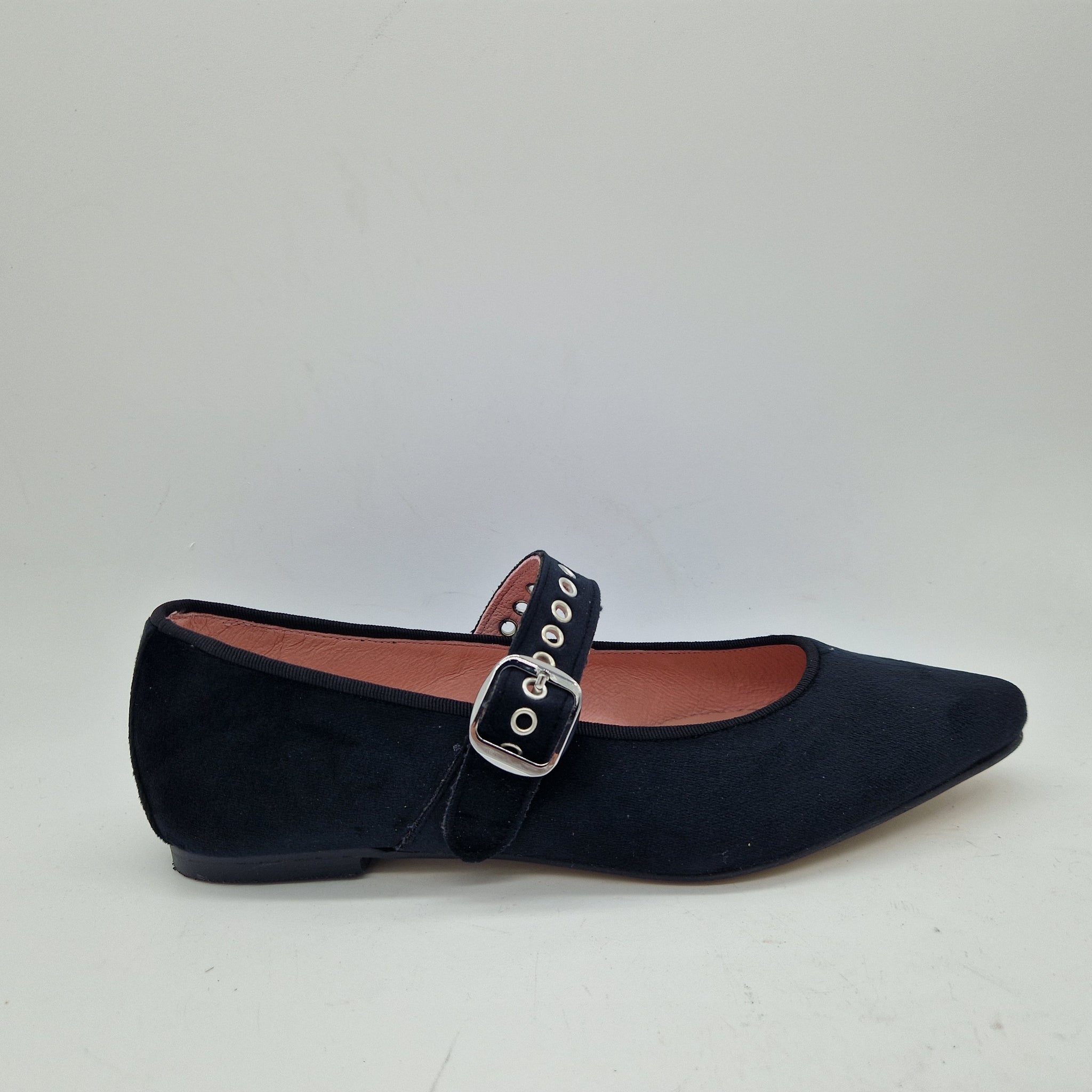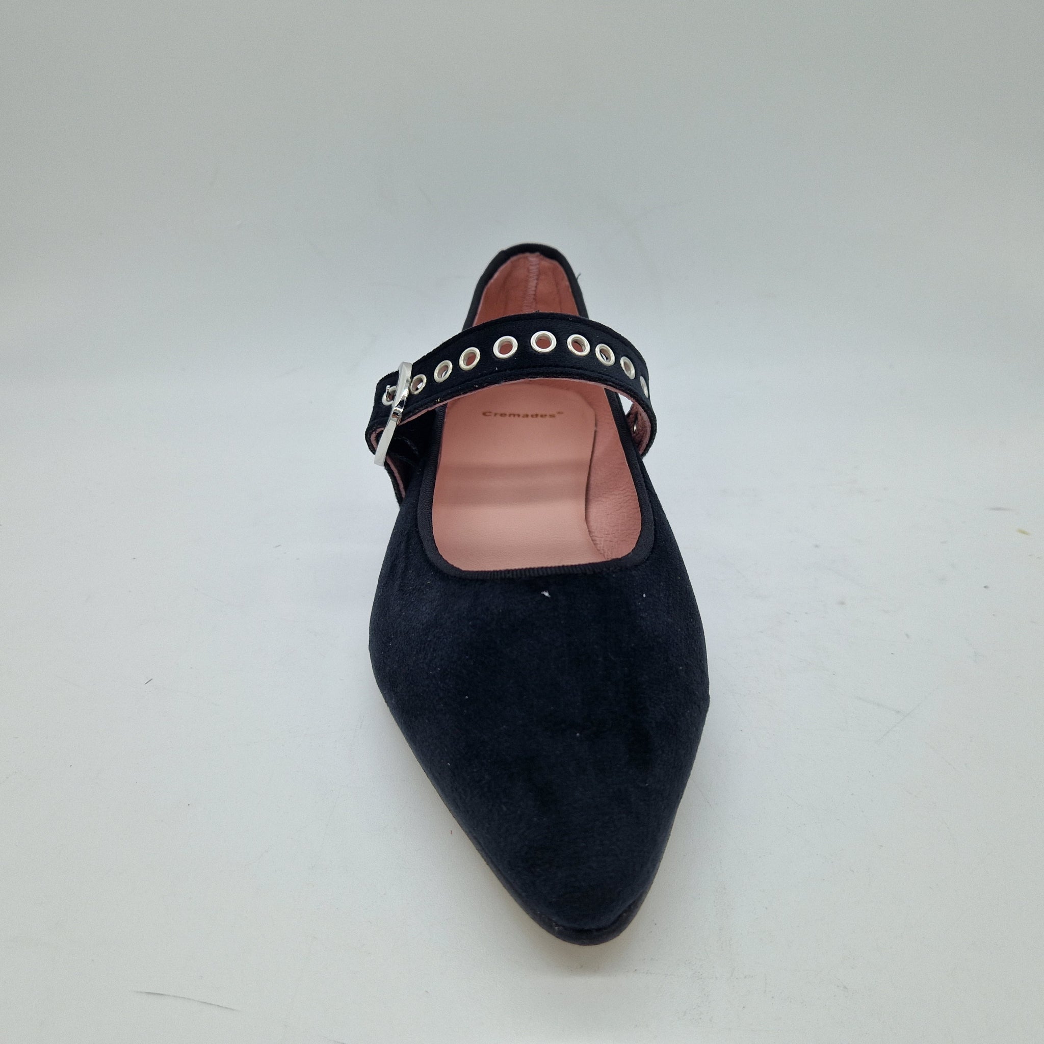 MERCEDES CON REMACHES Y PUNTERA FINA EN TERCIOPELO NEGRO