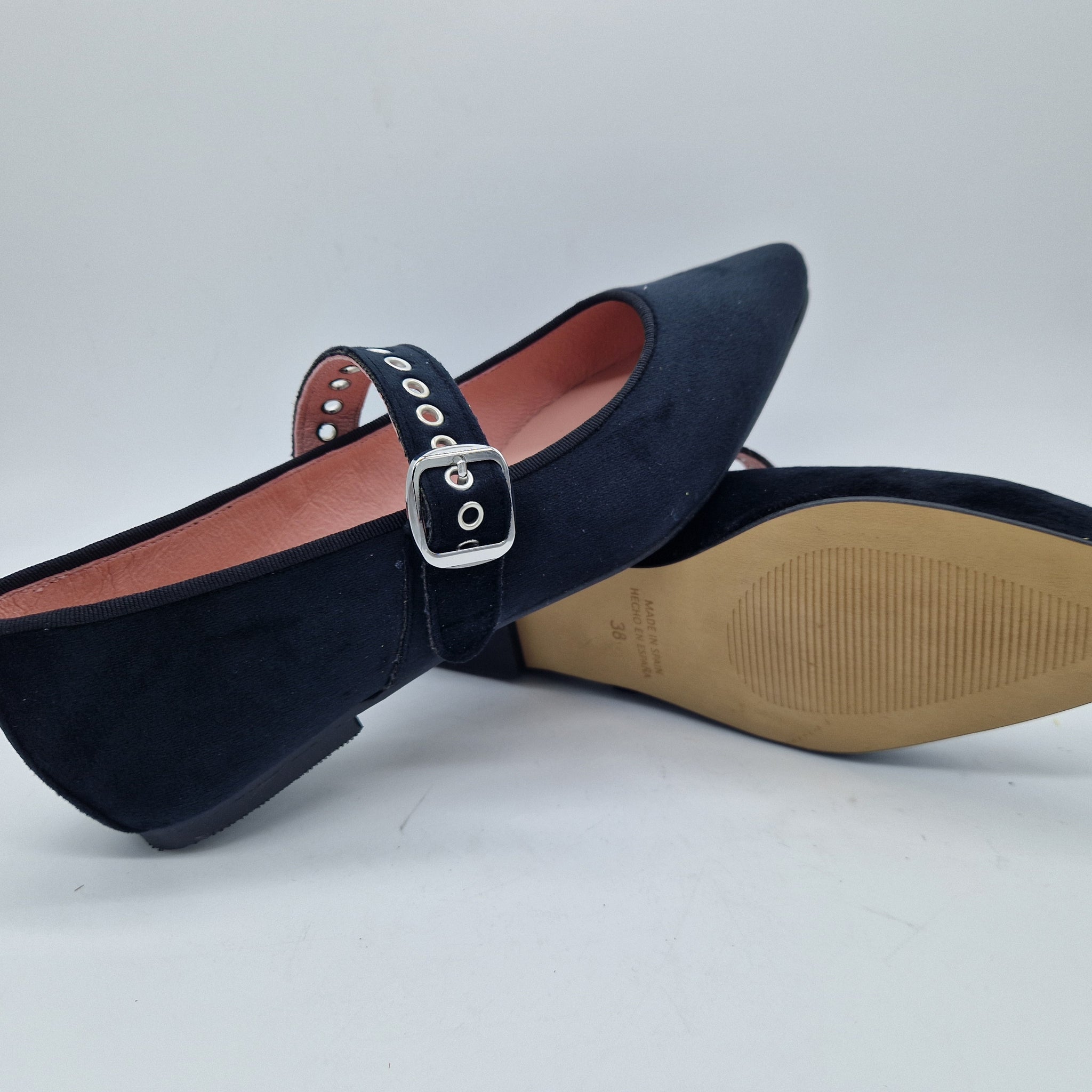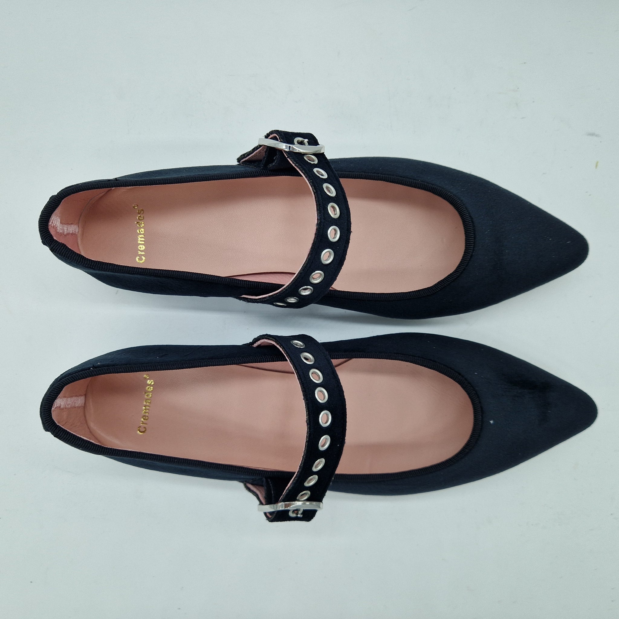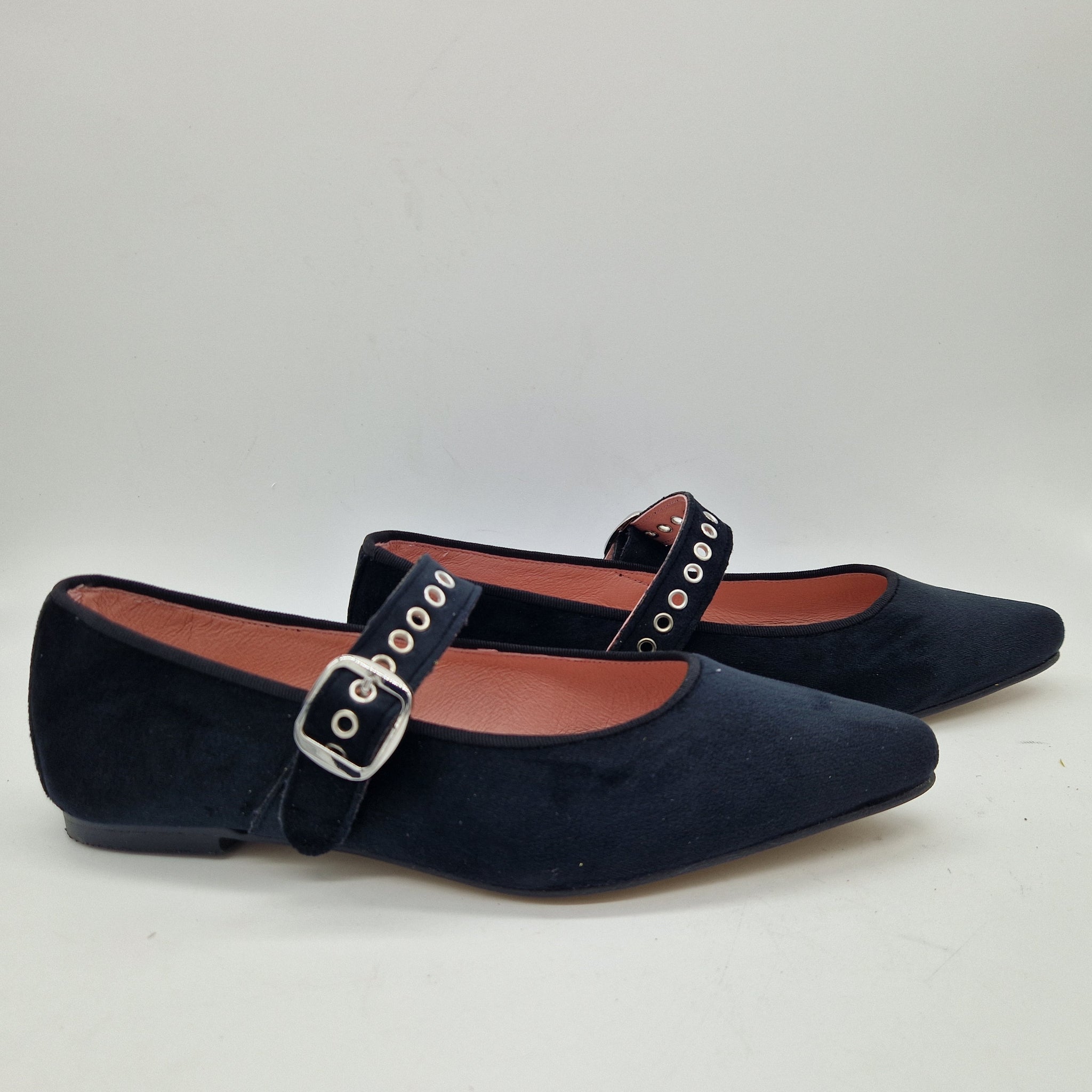 MERCEDES CON REMACHES Y PUNTERA FINA EN TERCIOPELO NEGRO
