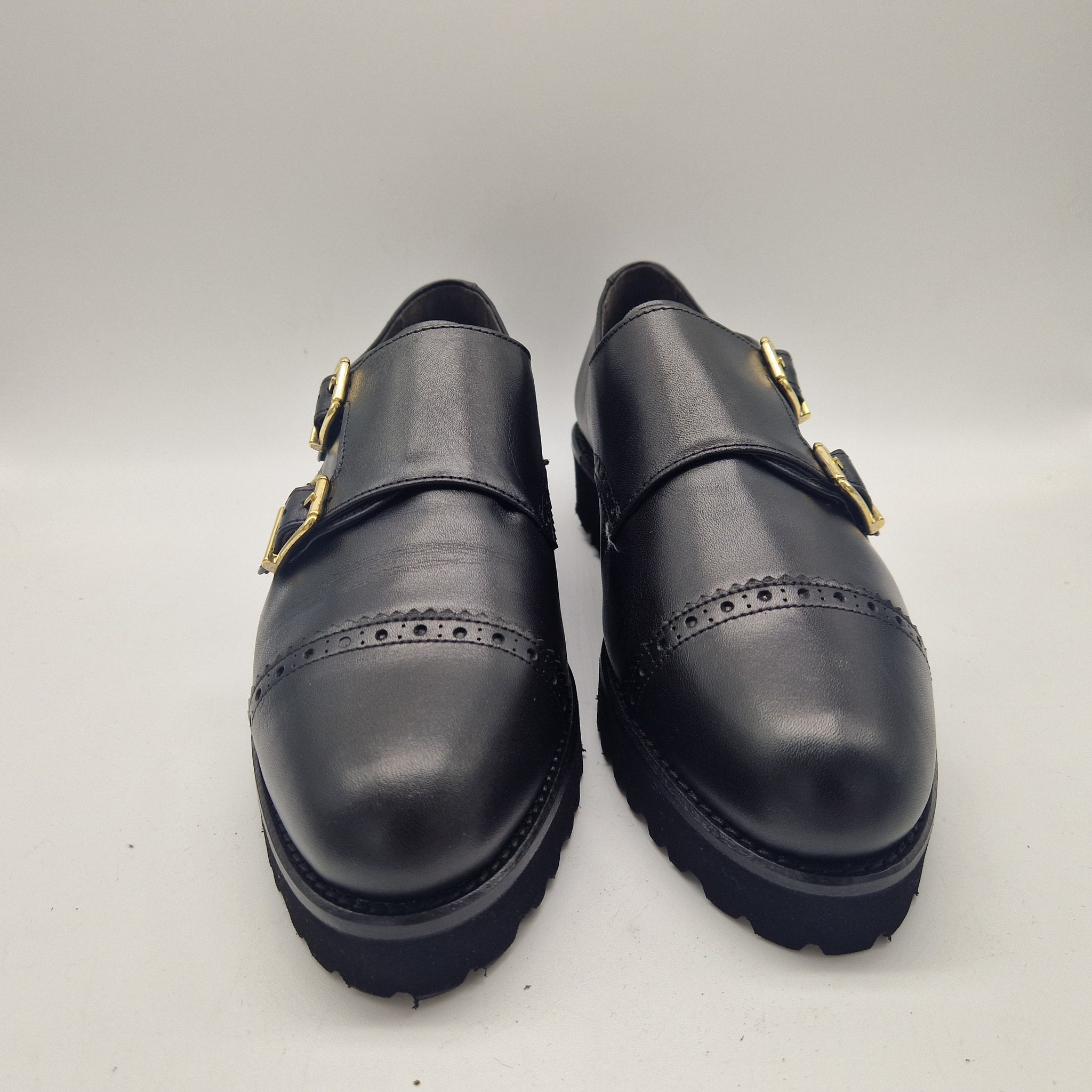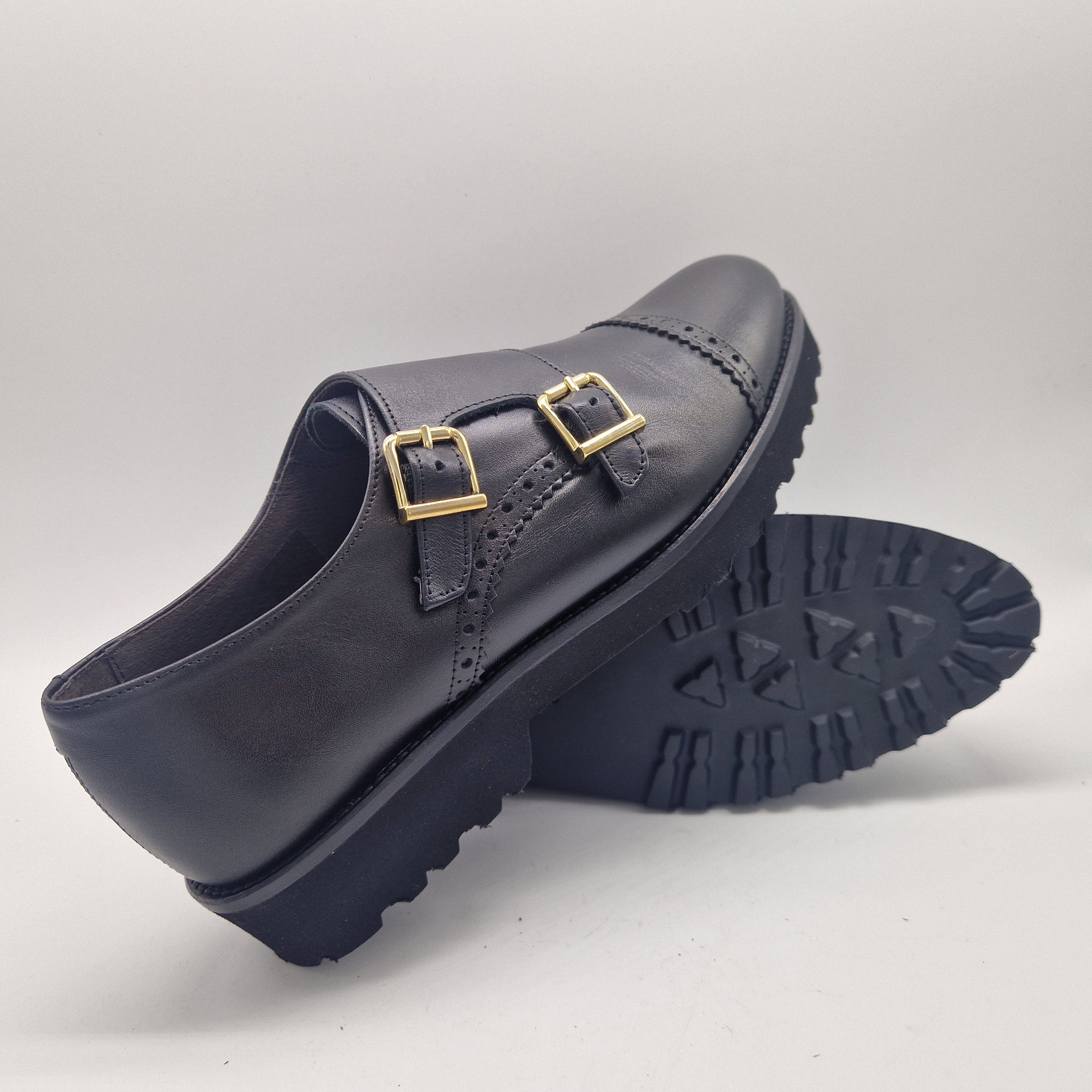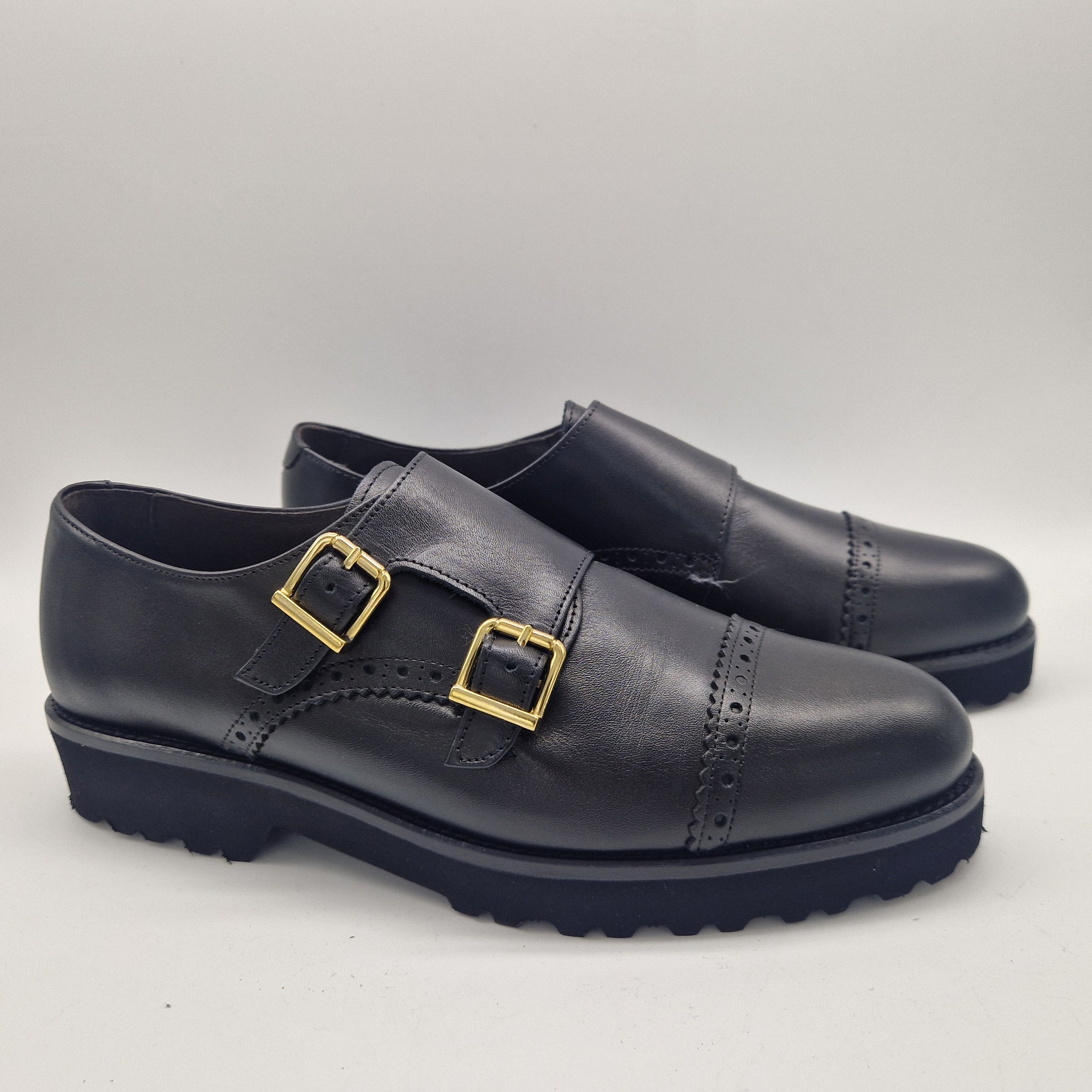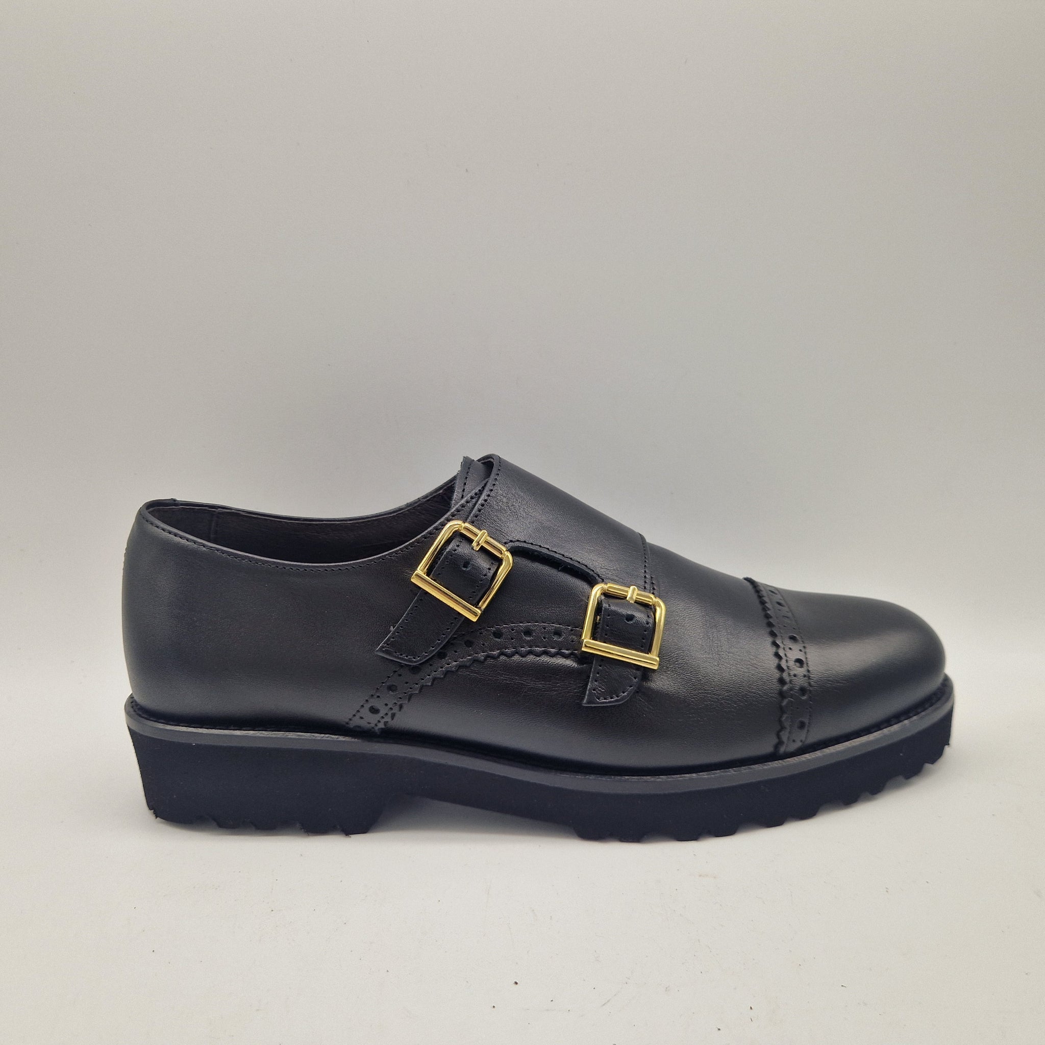 2 HEBILLAS EN PIEL NEGRA Y PISO EXTRALIGHT