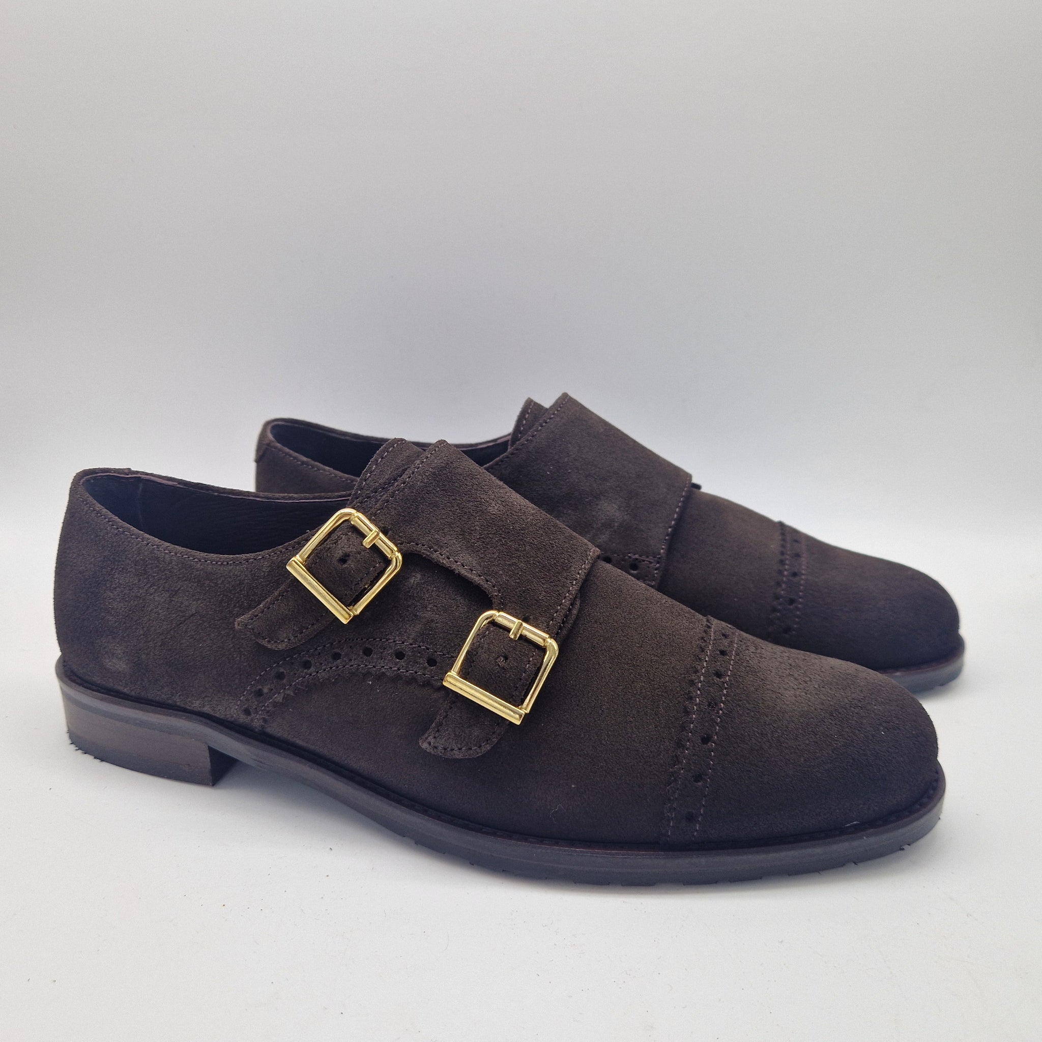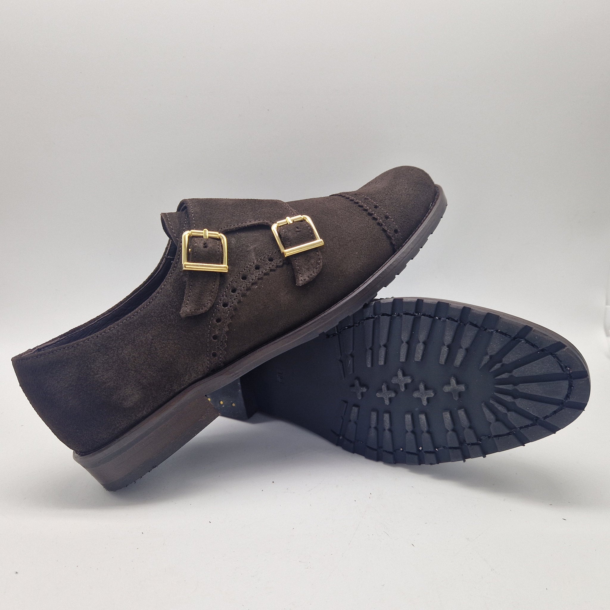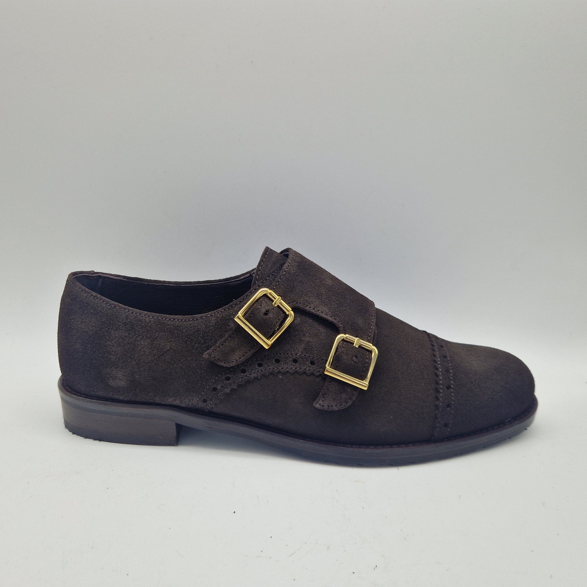 2 HEBILLAS EN SERRAJE MARRÓN Y PISO FINO