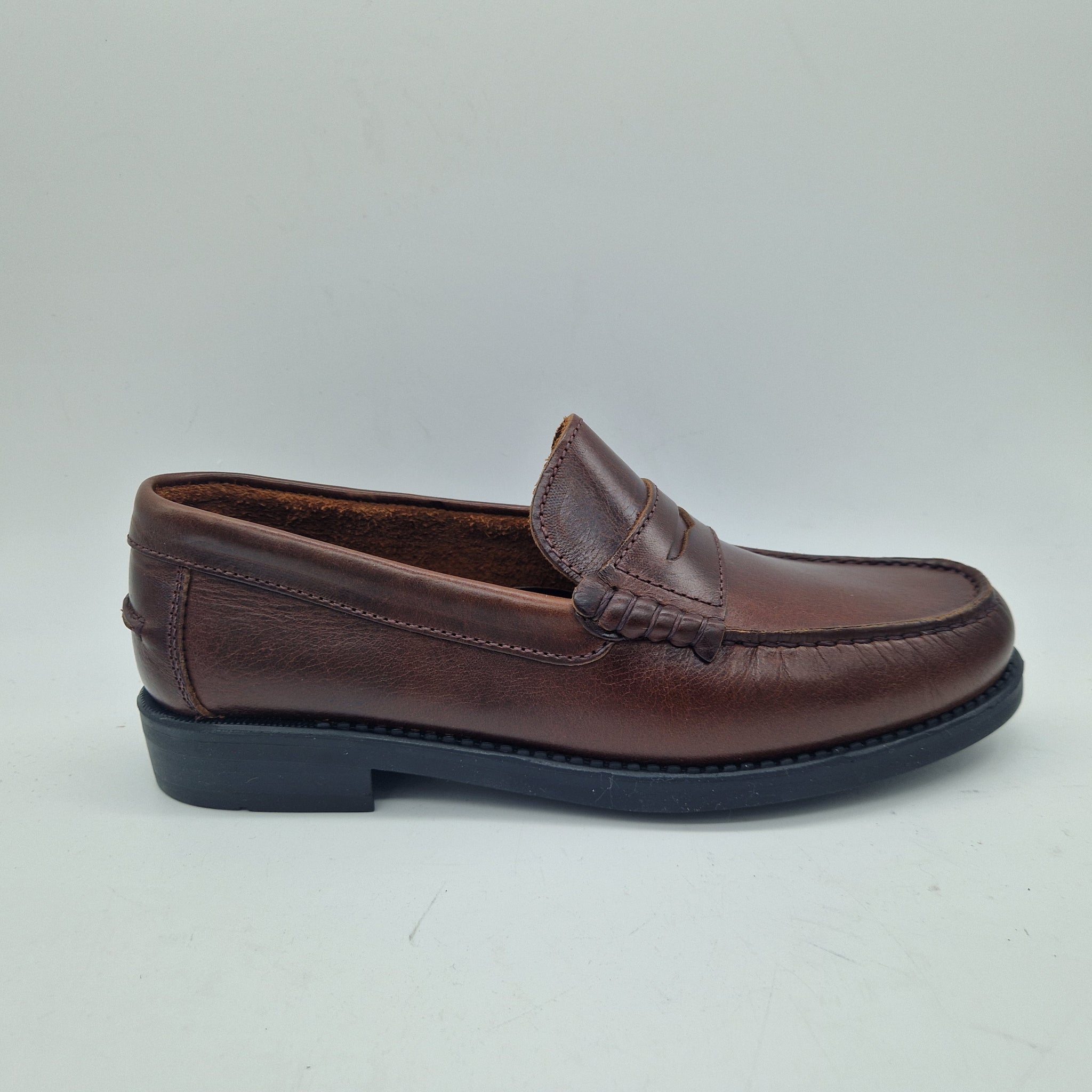 CASTELLANO DE ANTIFAZ EN PIEL ENGRASADA MARRÓN Y PISO DE GOMA