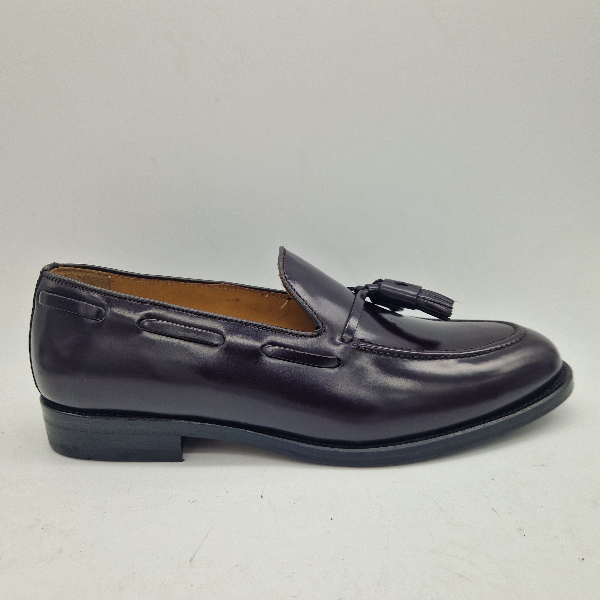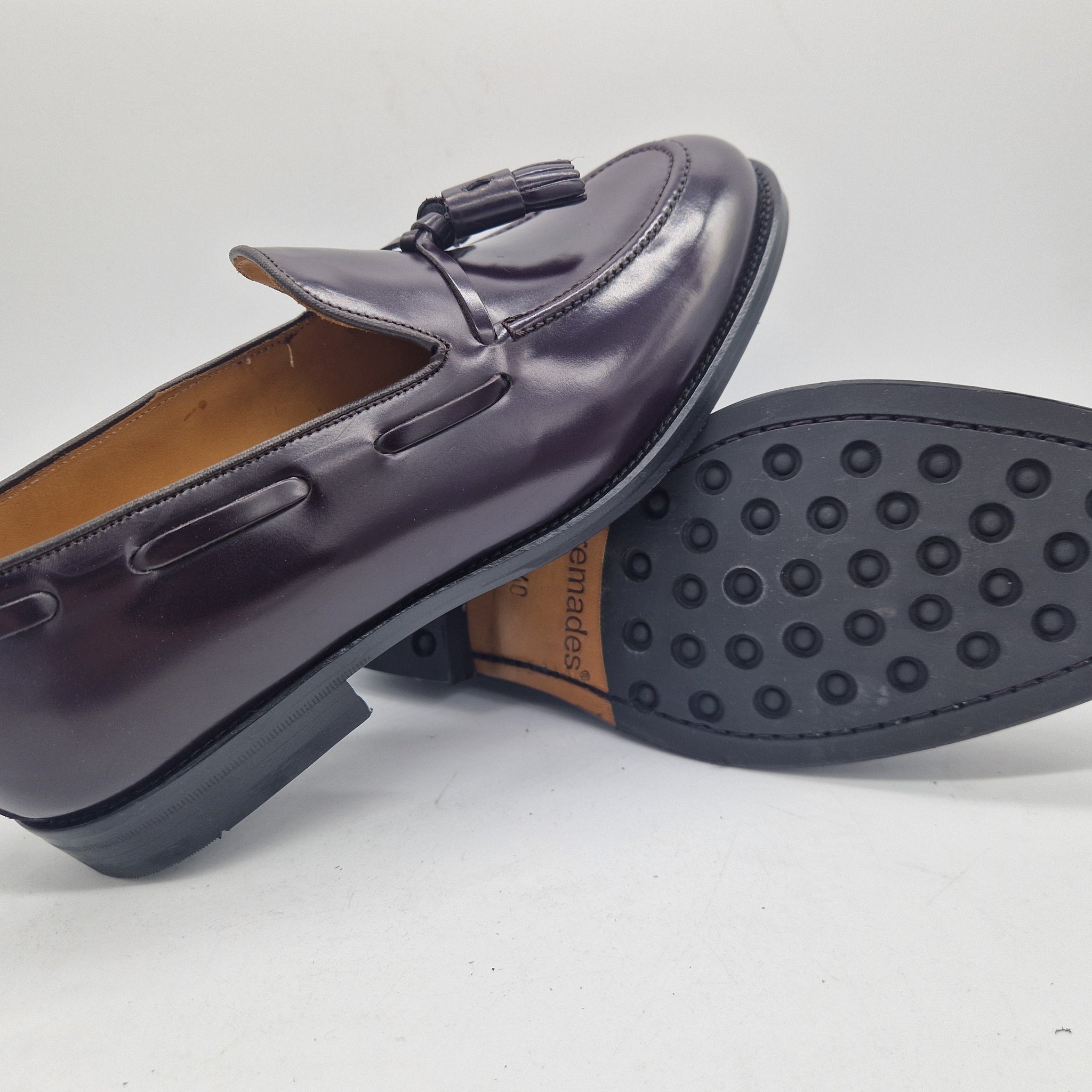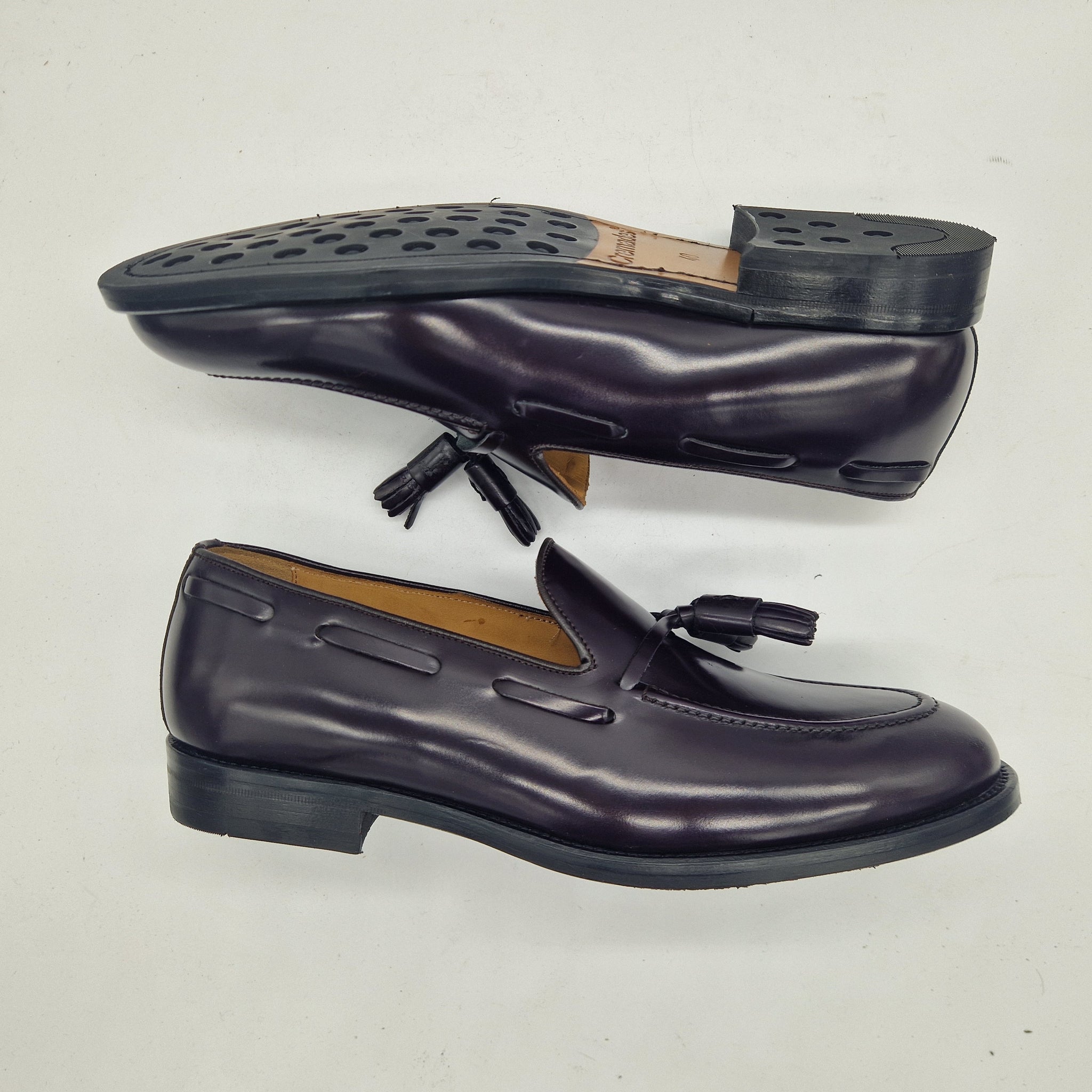 CASTELLANO DE BORLAS EN PIEL BURDEOS CON BRILLO Y PISO MIXTO