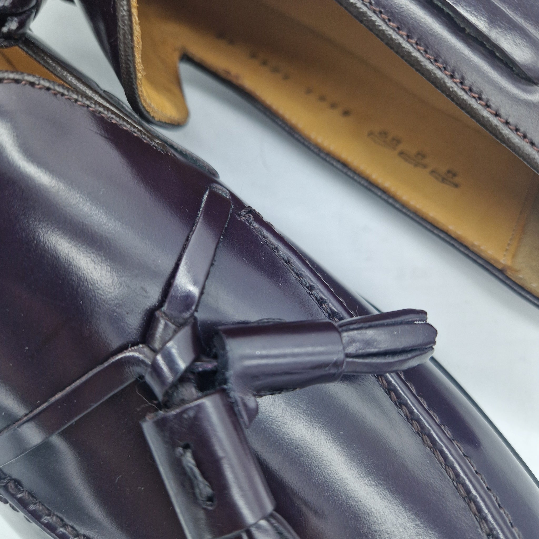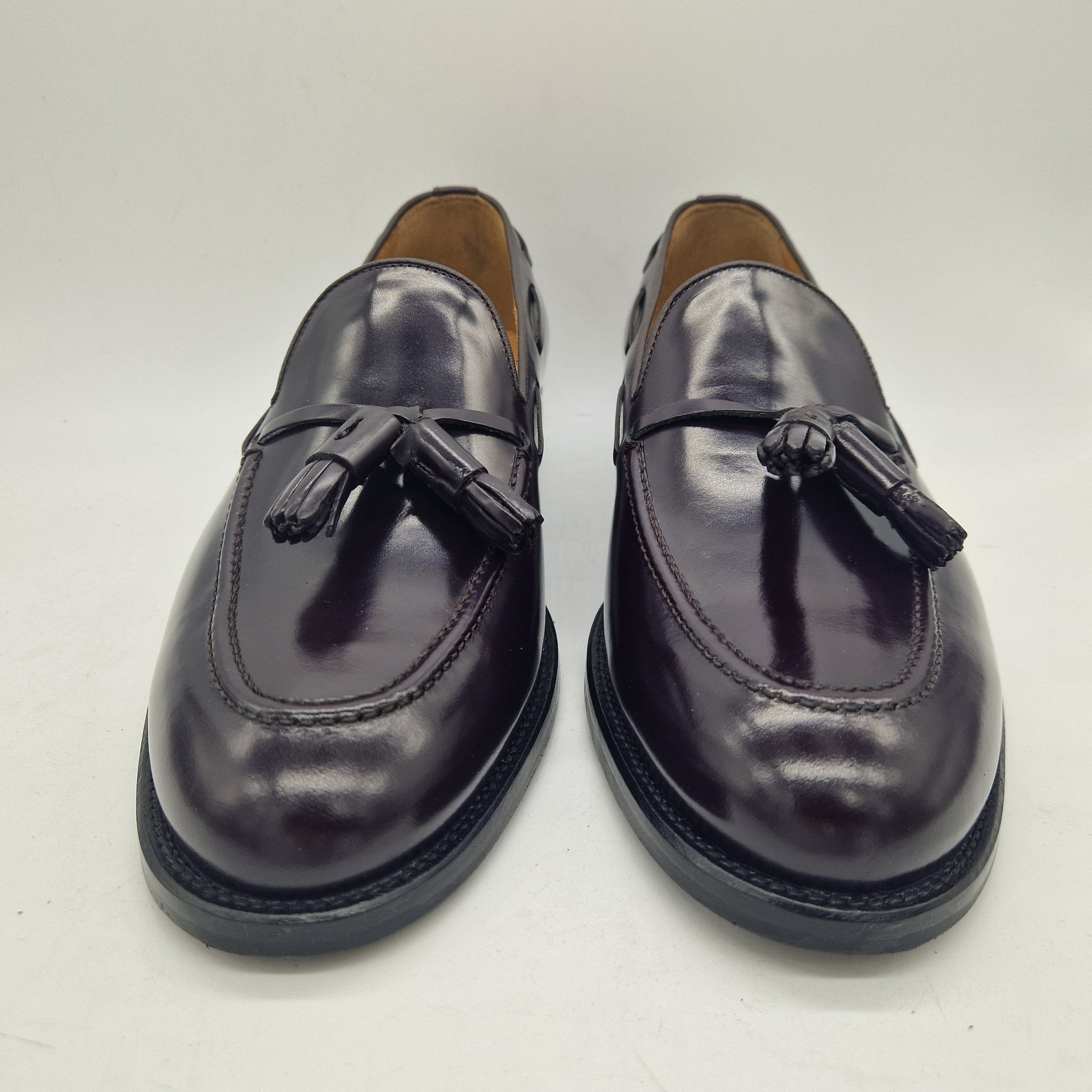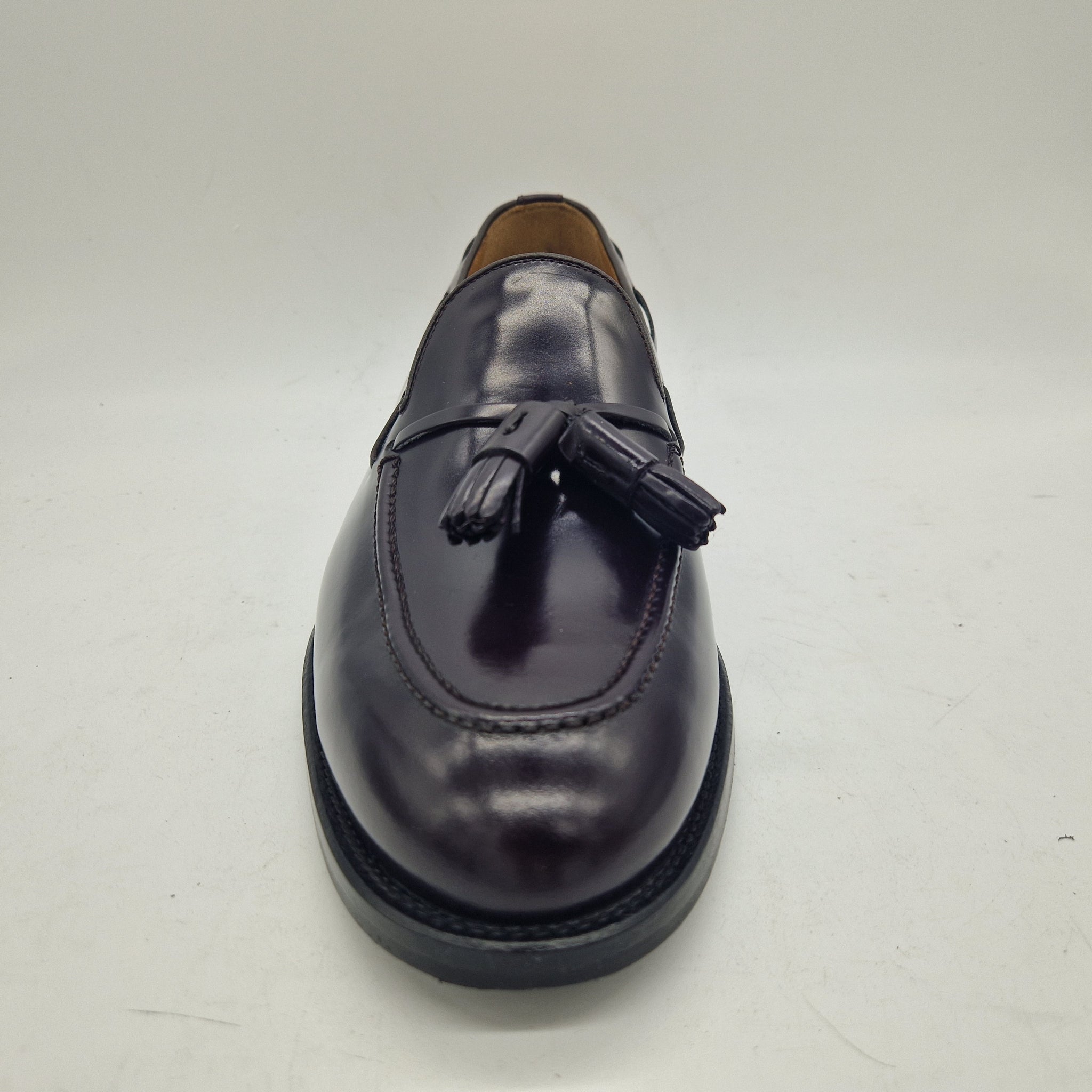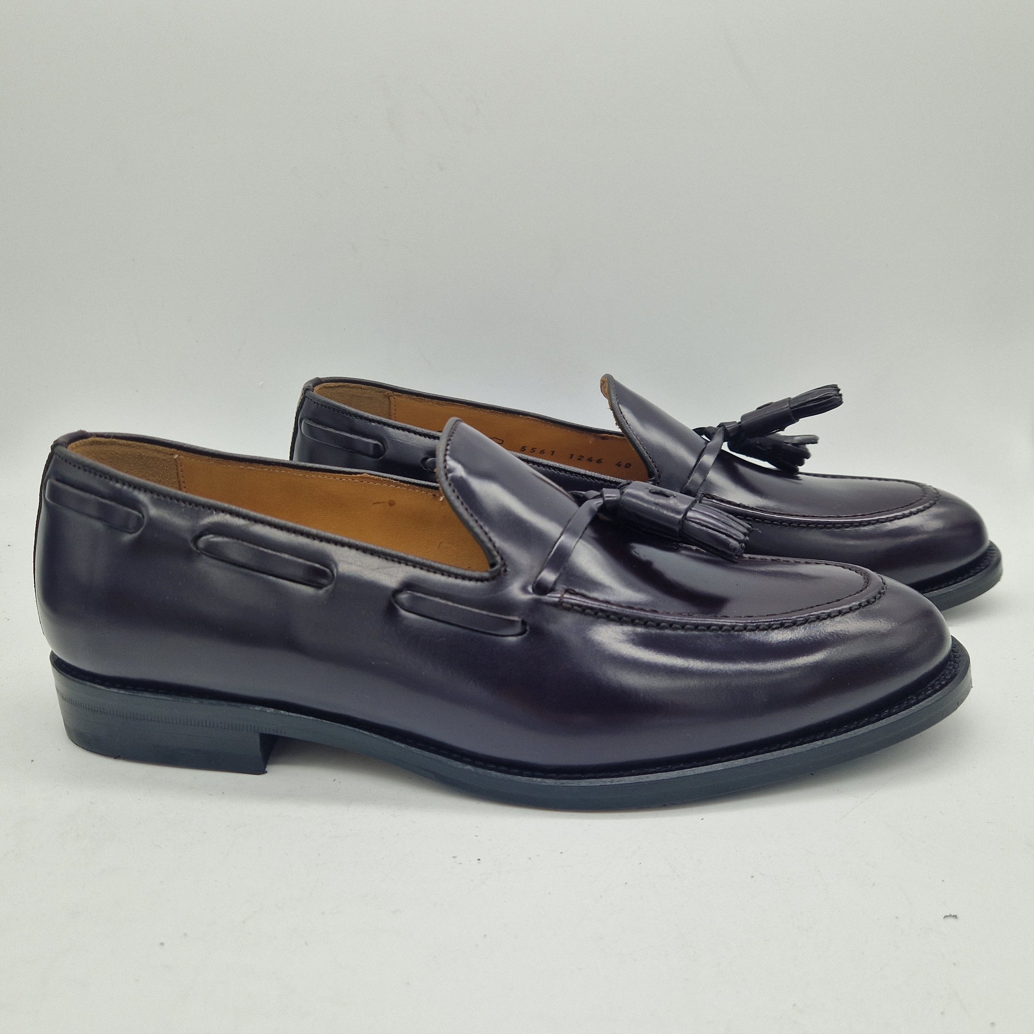 CASTELLANO DE BORLAS EN PIEL BURDEOS CON BRILLO Y PISO MIXTO