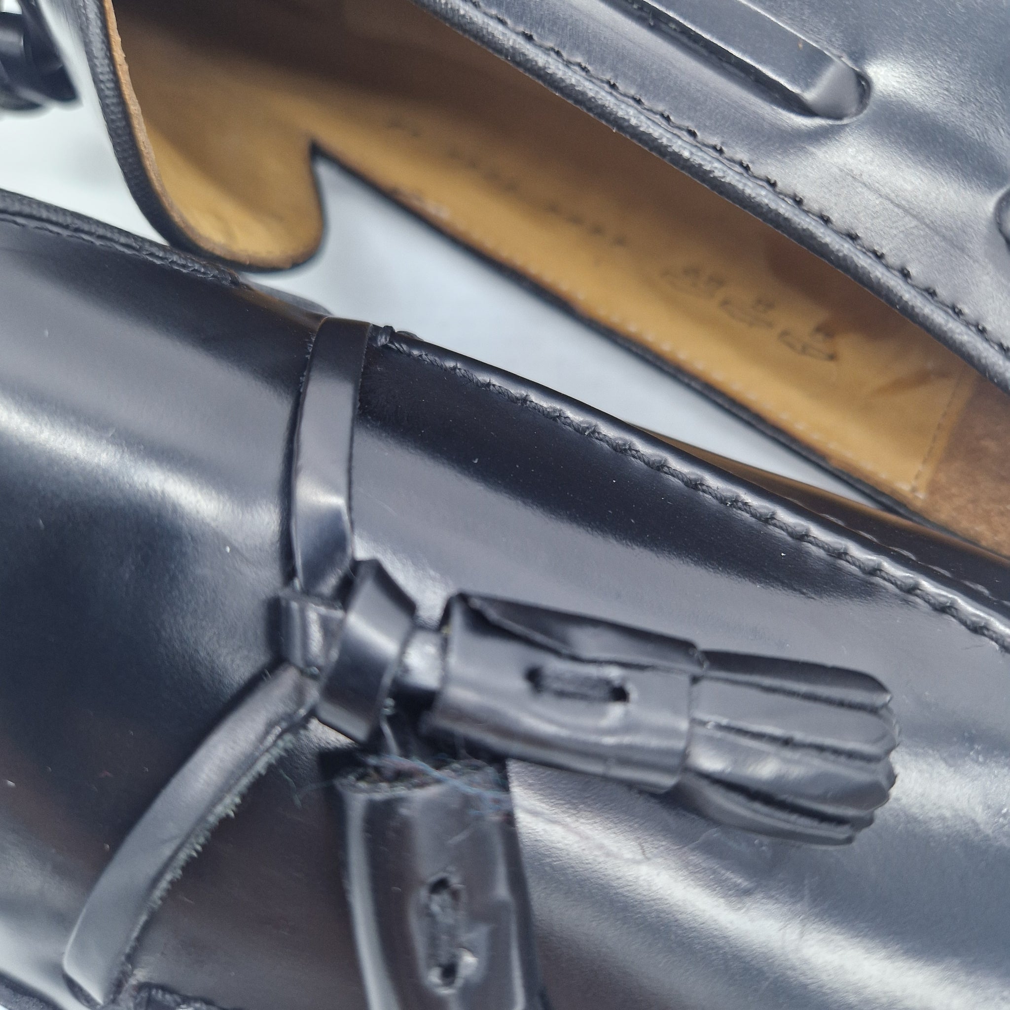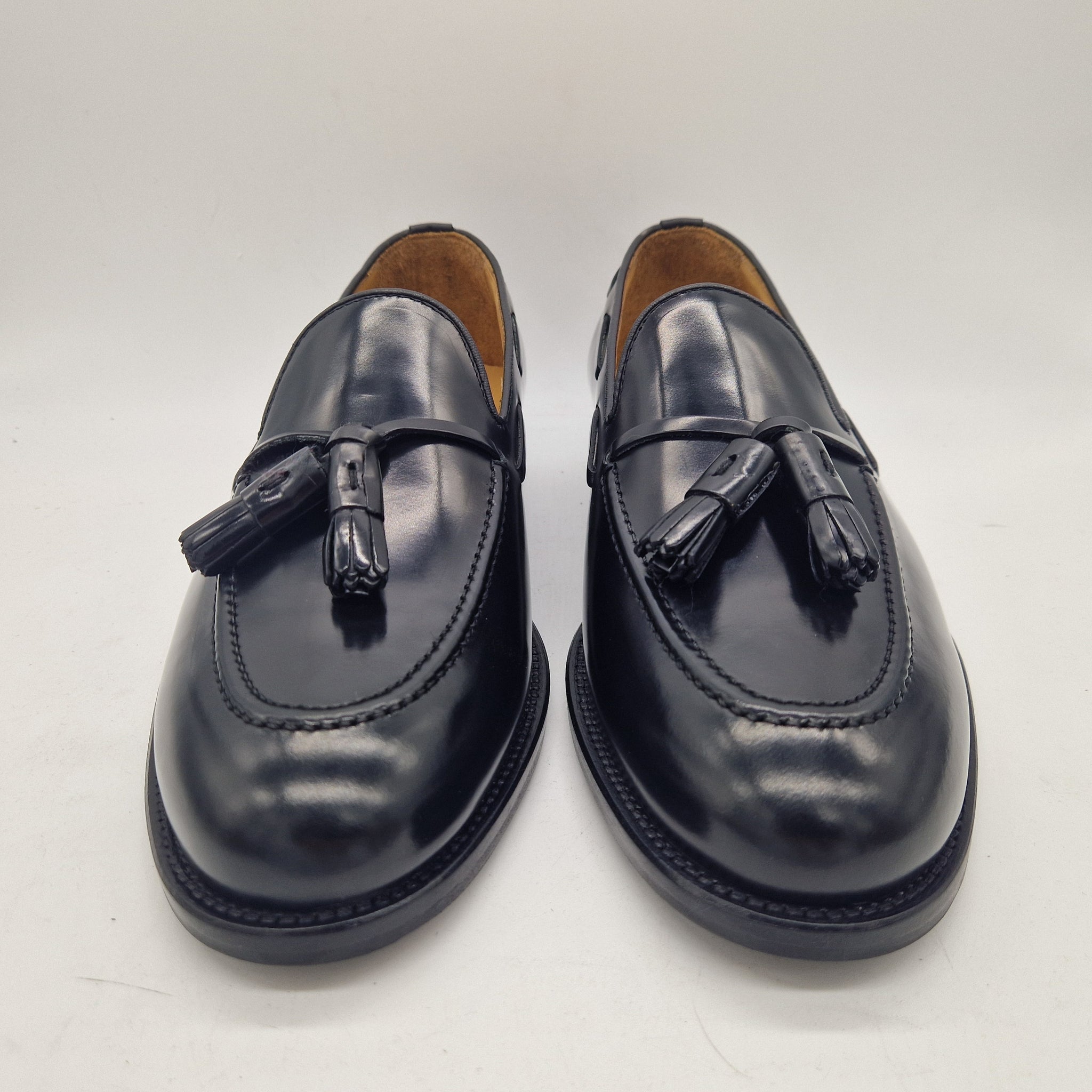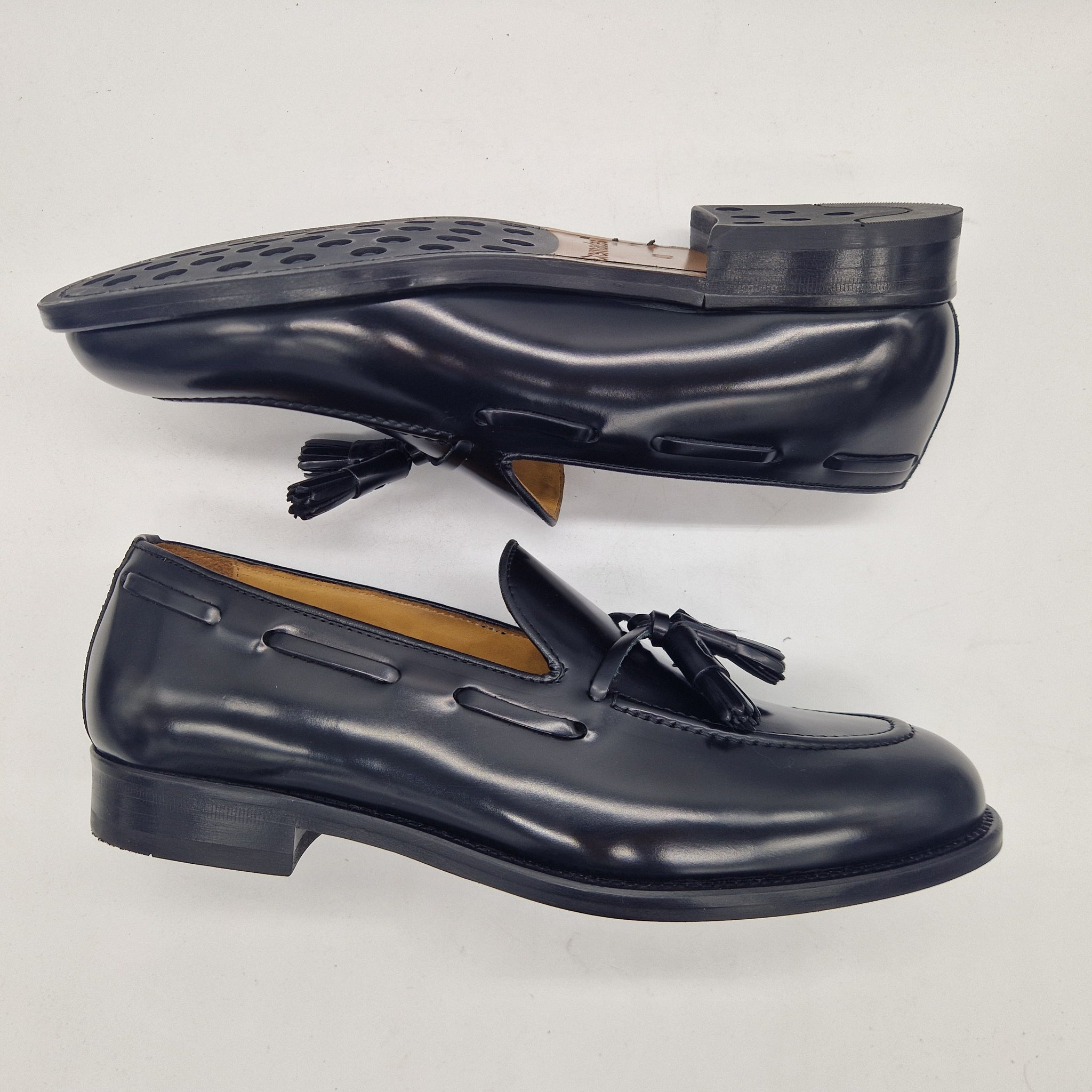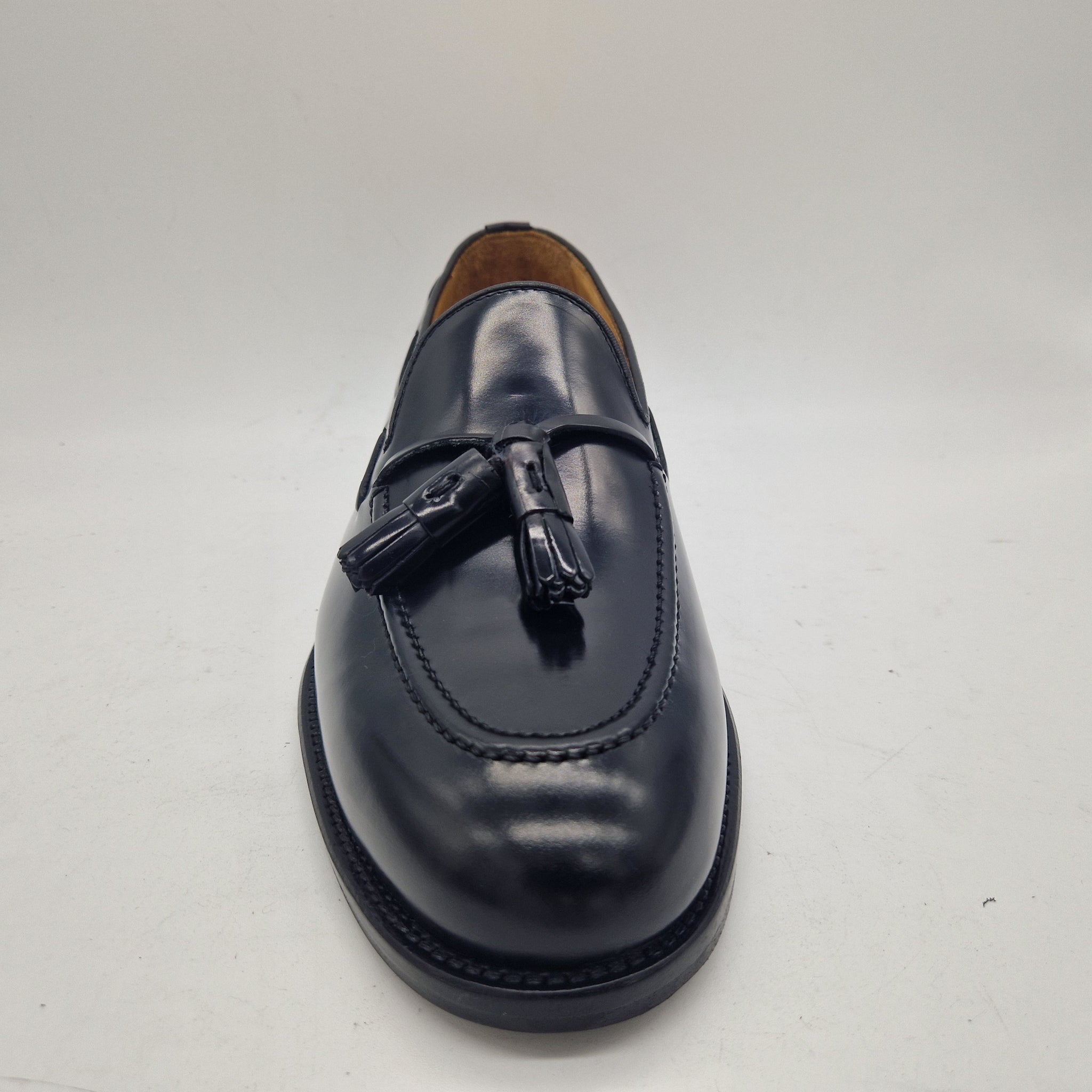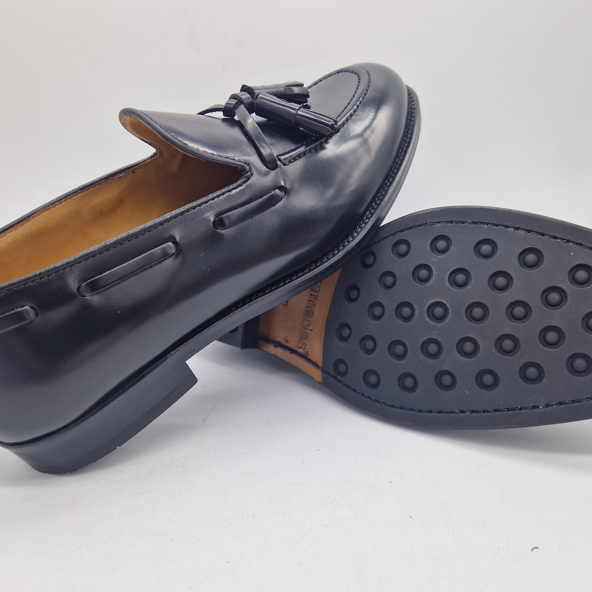 CASTELLANO DE BORLAS EN PIEL NEGRA CON BRILLO Y PISO MIXTO