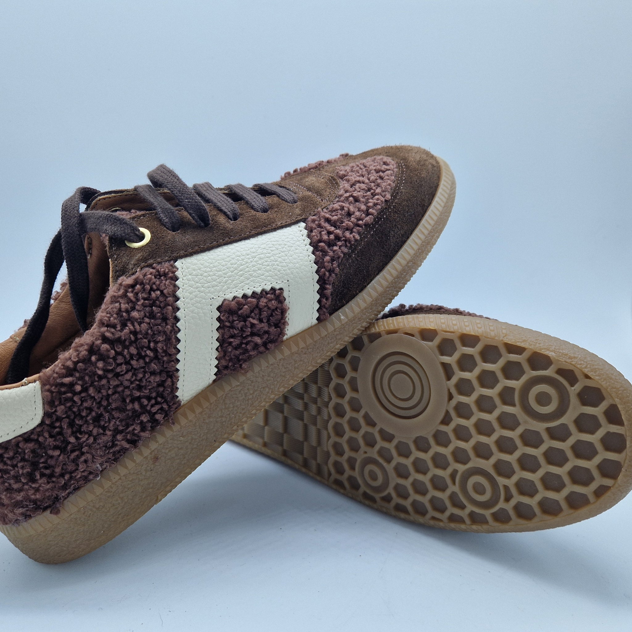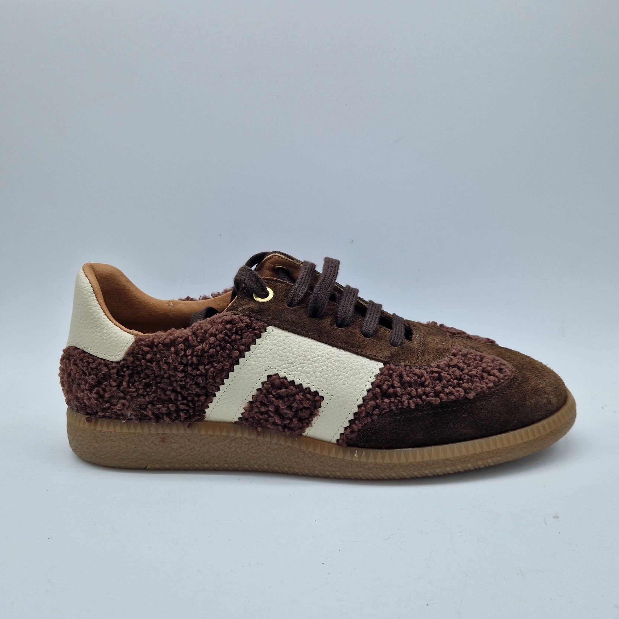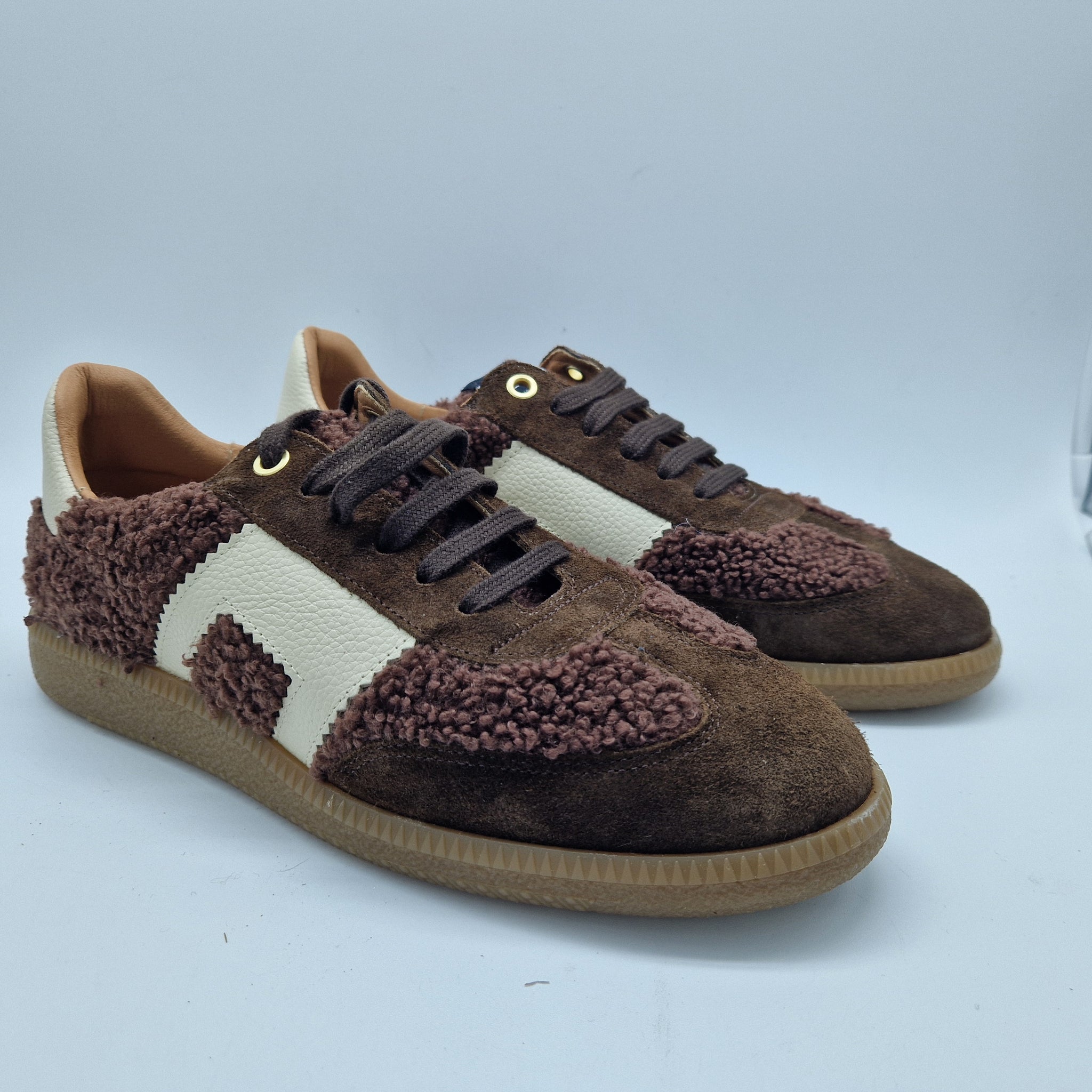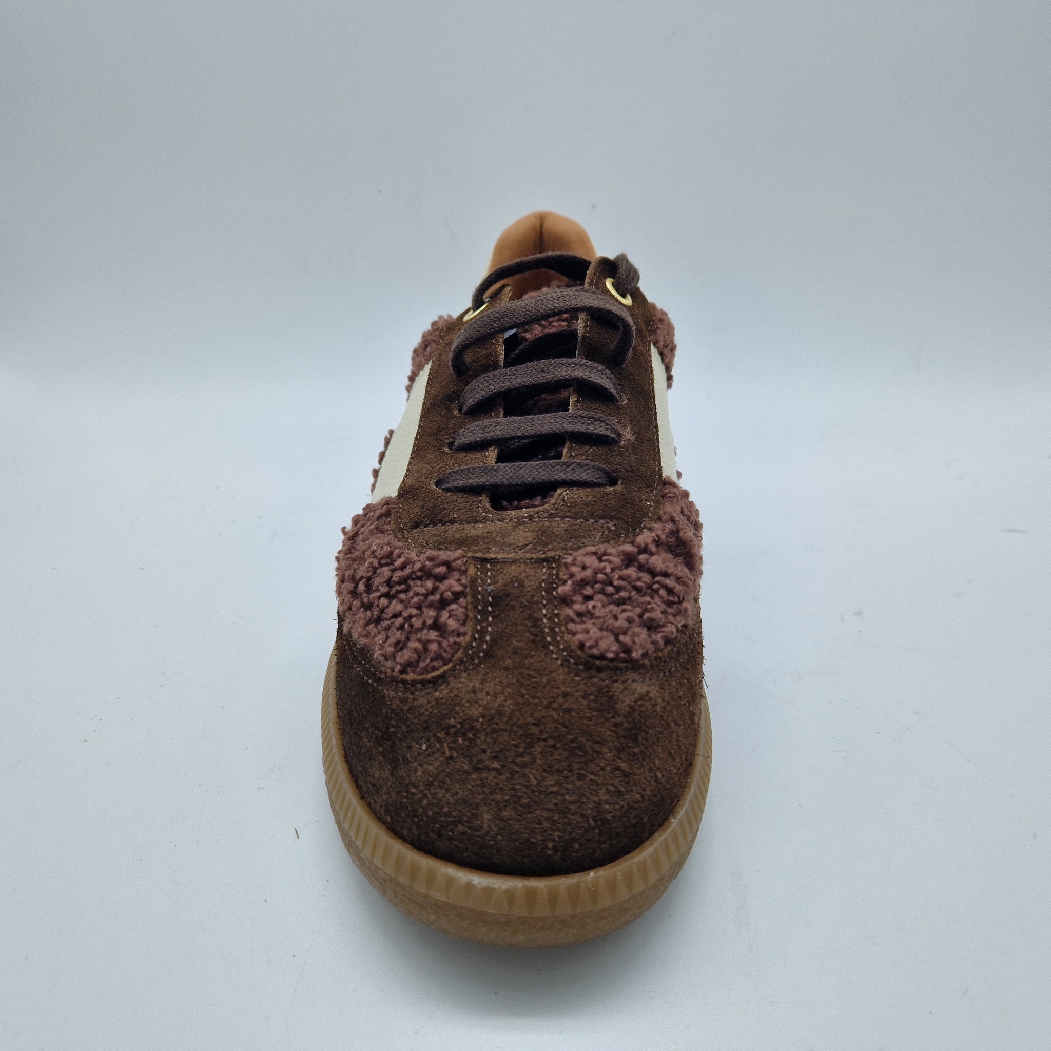 DEPORTIVO DE CORDONES CON DETALLES DE BORREGO EN TONOS MARRONES