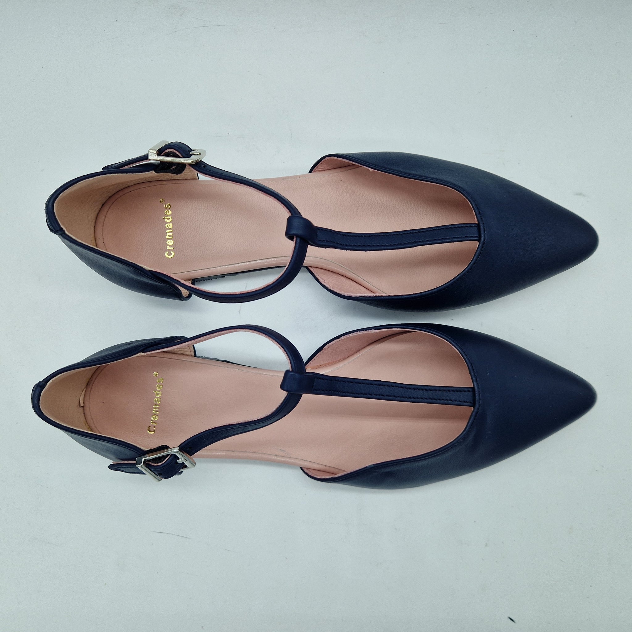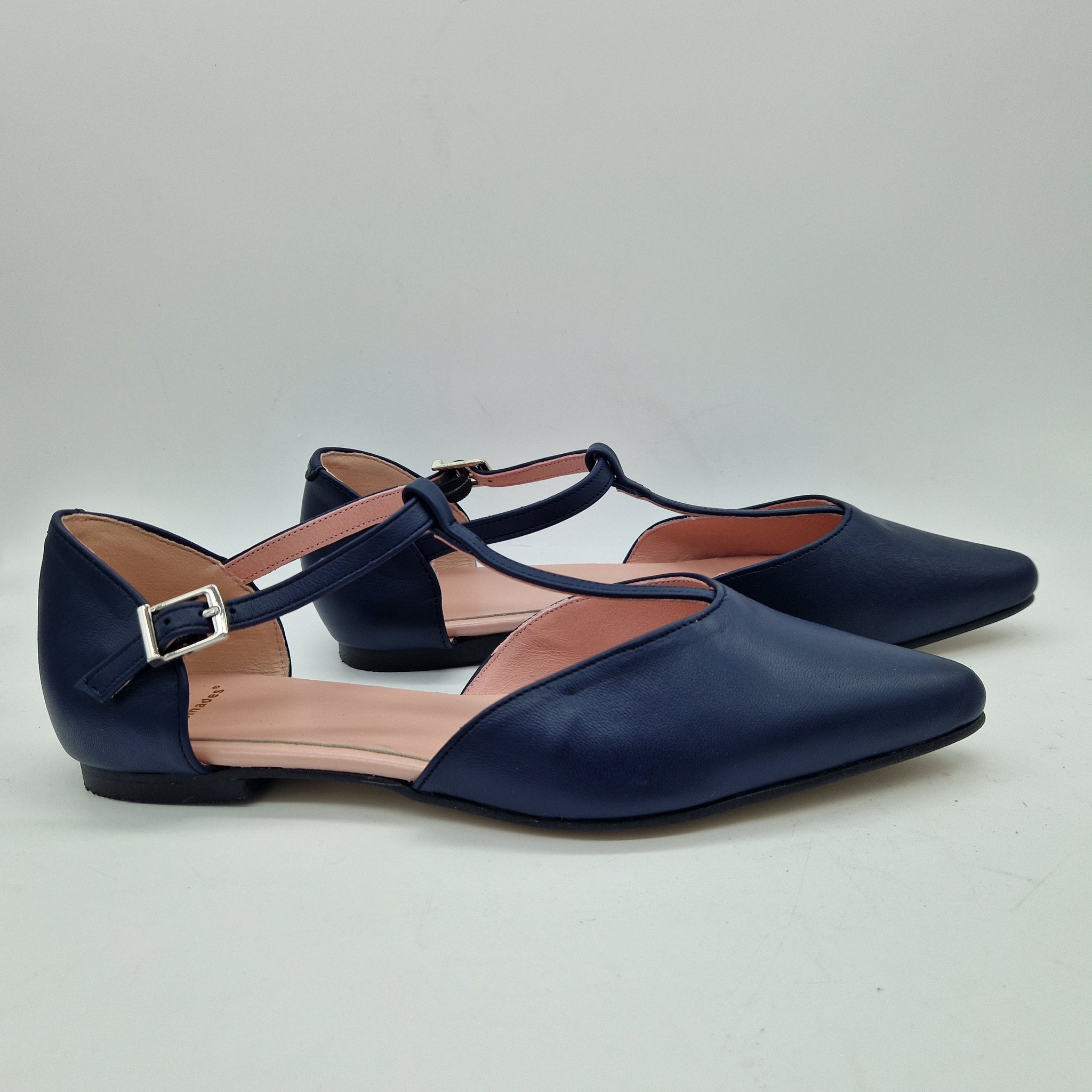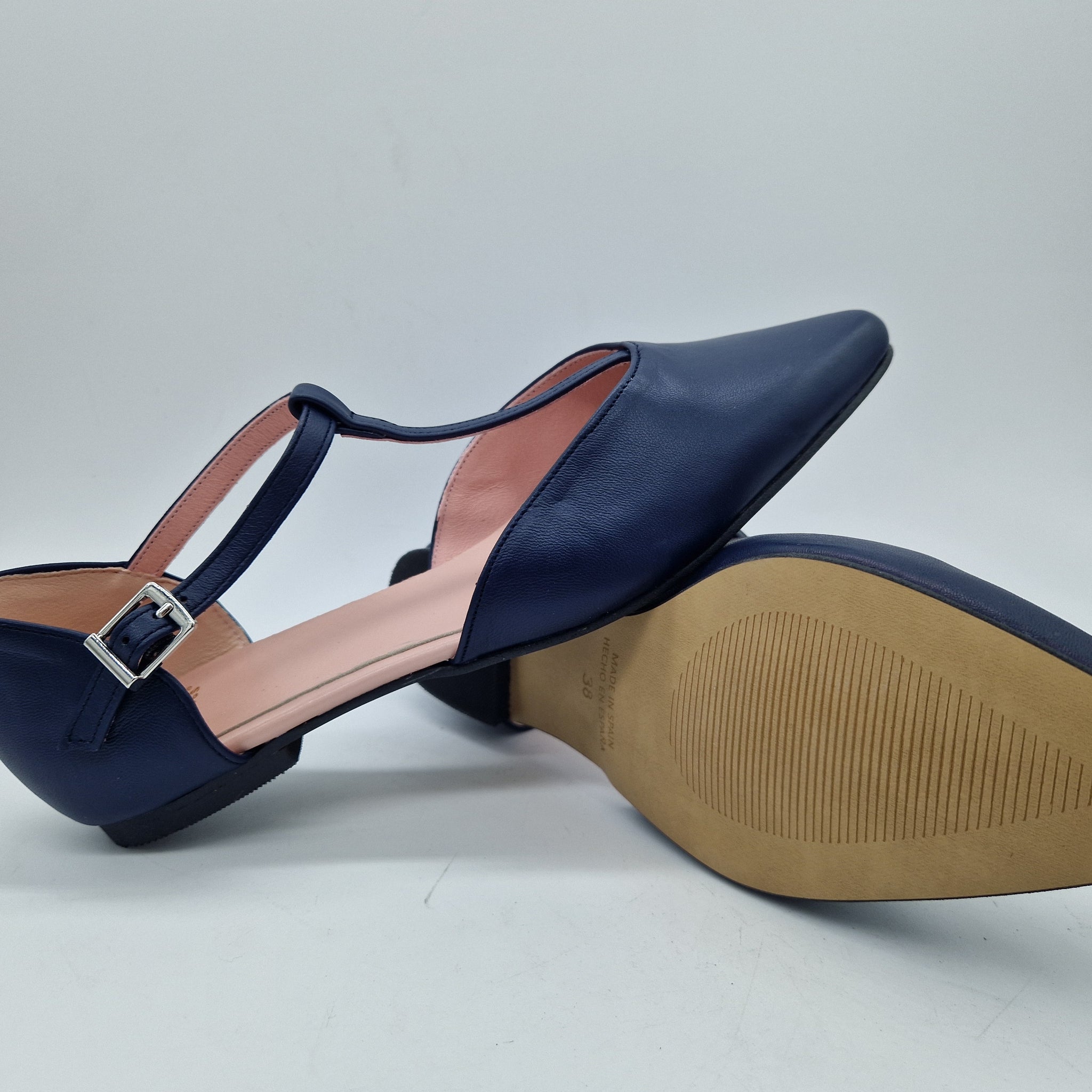 MERCEDES CON TRABAILLA EN PIEL MARINO Y HORMA DE PUNTA