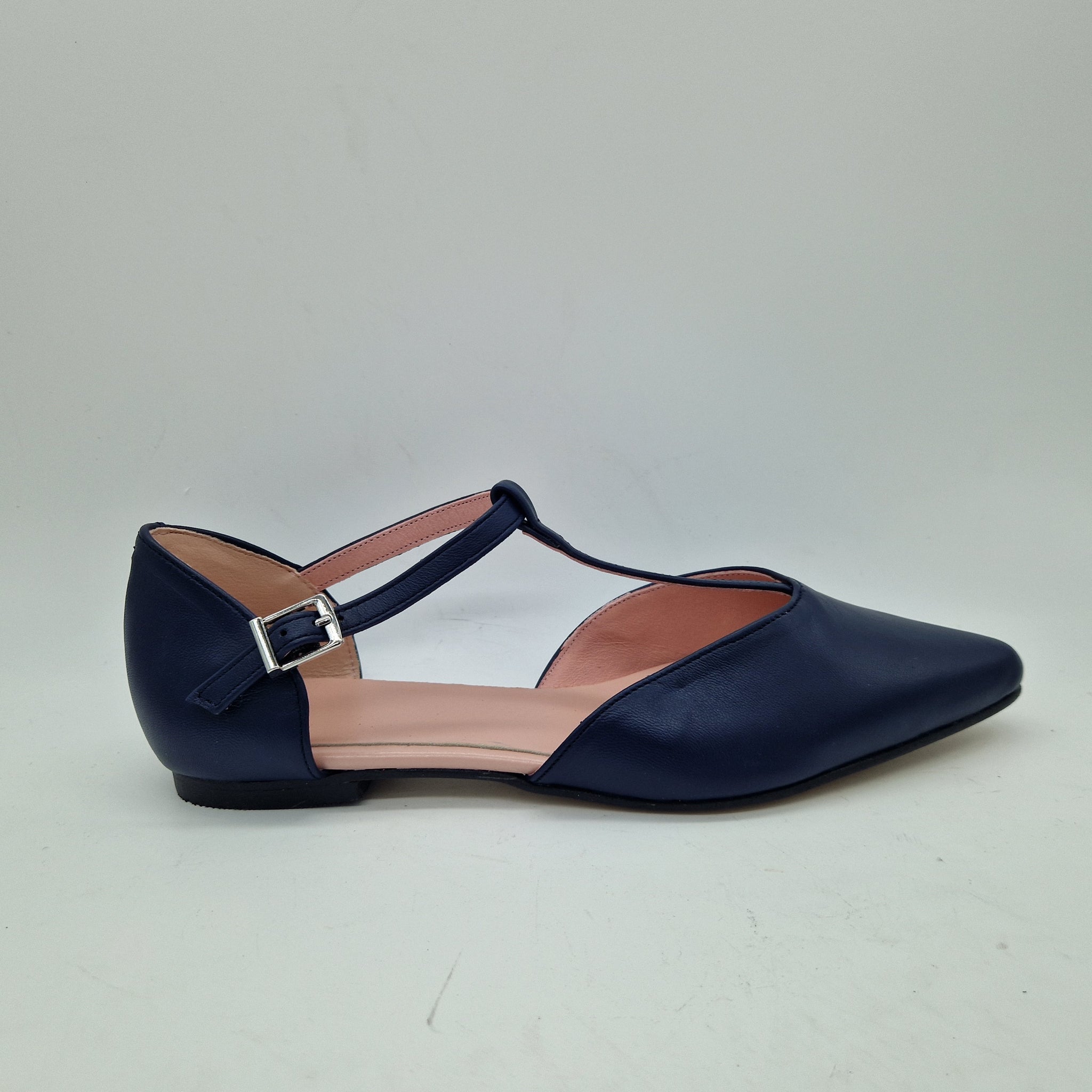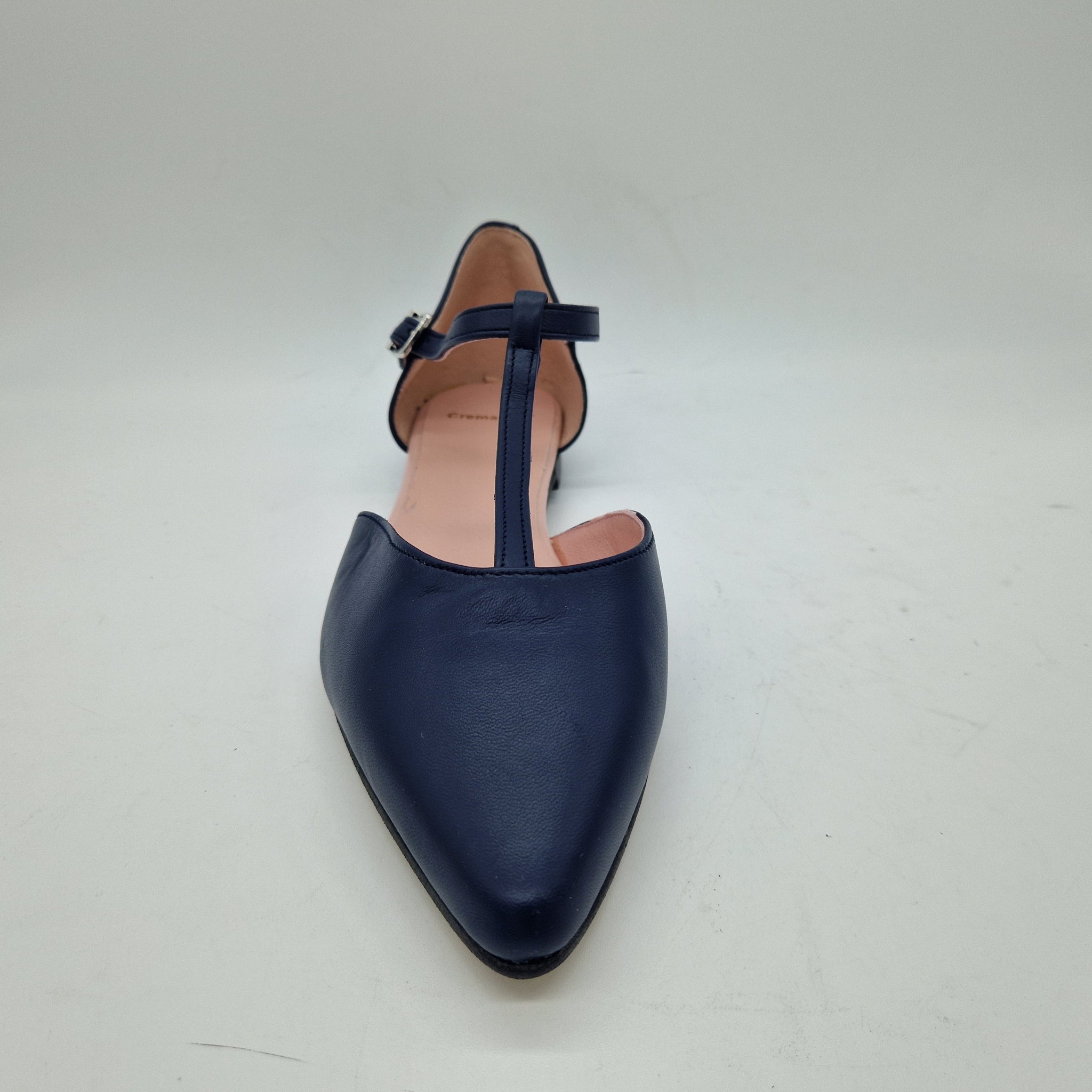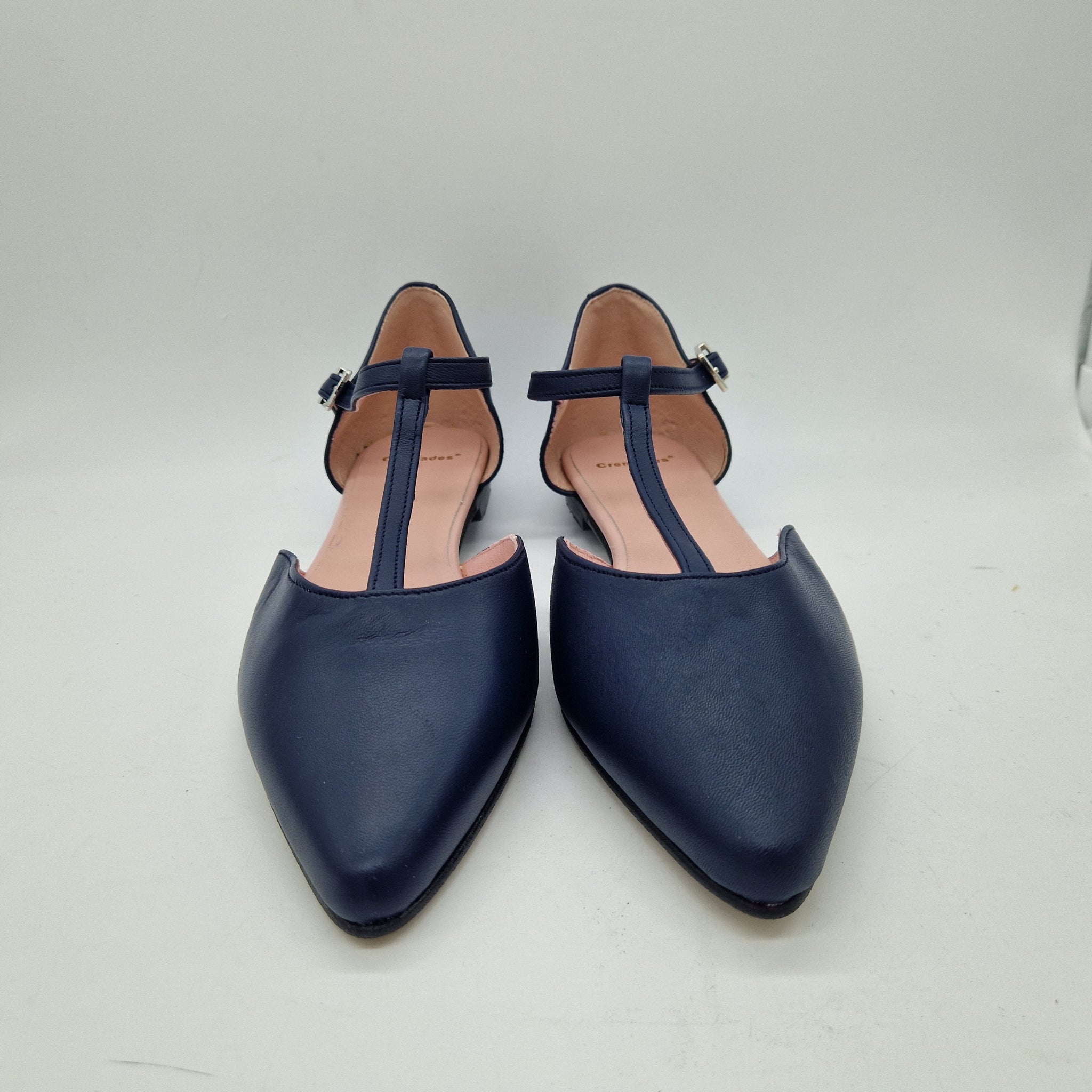 MERCEDES CON TRABAILLA EN PIEL MARINO Y HORMA DE PUNTA