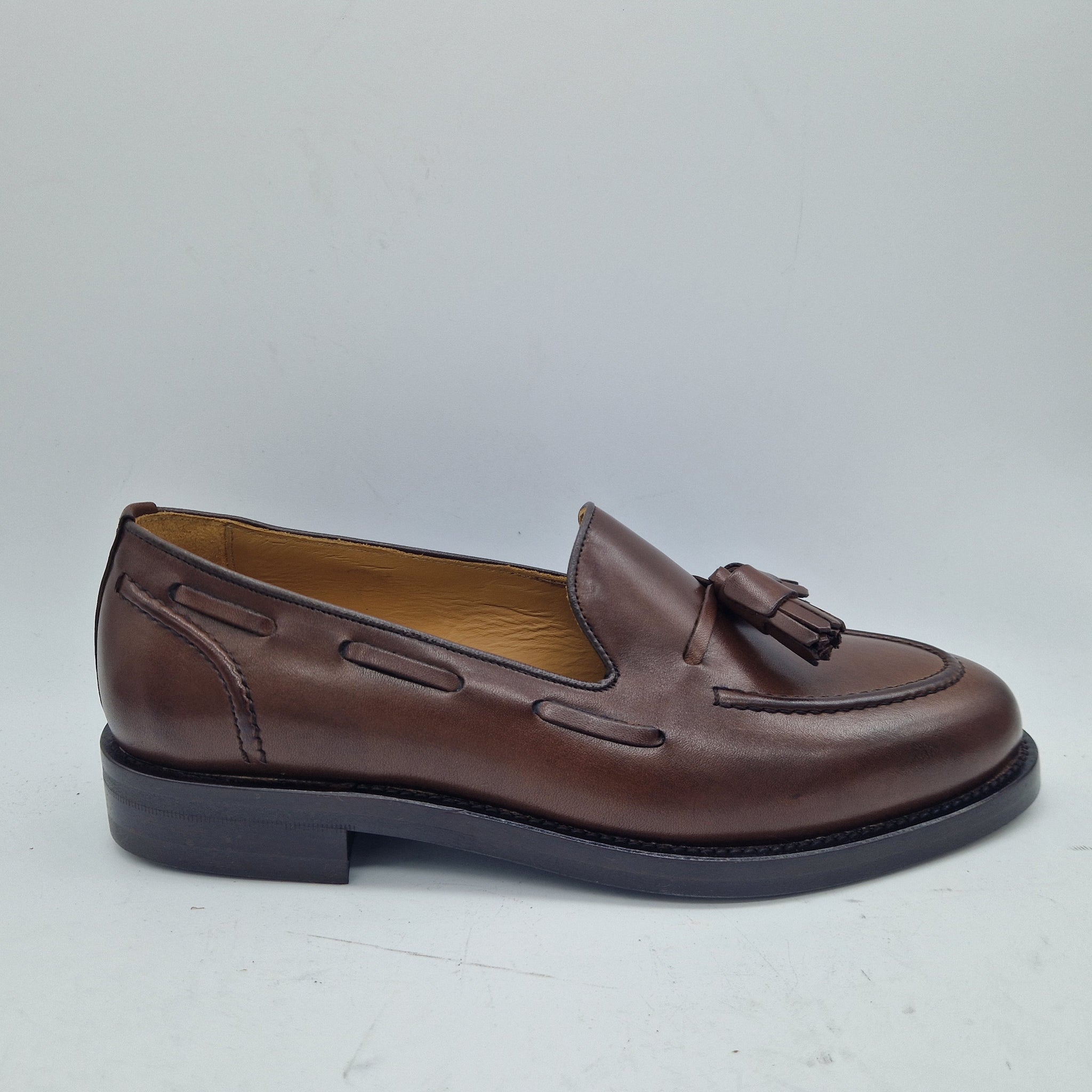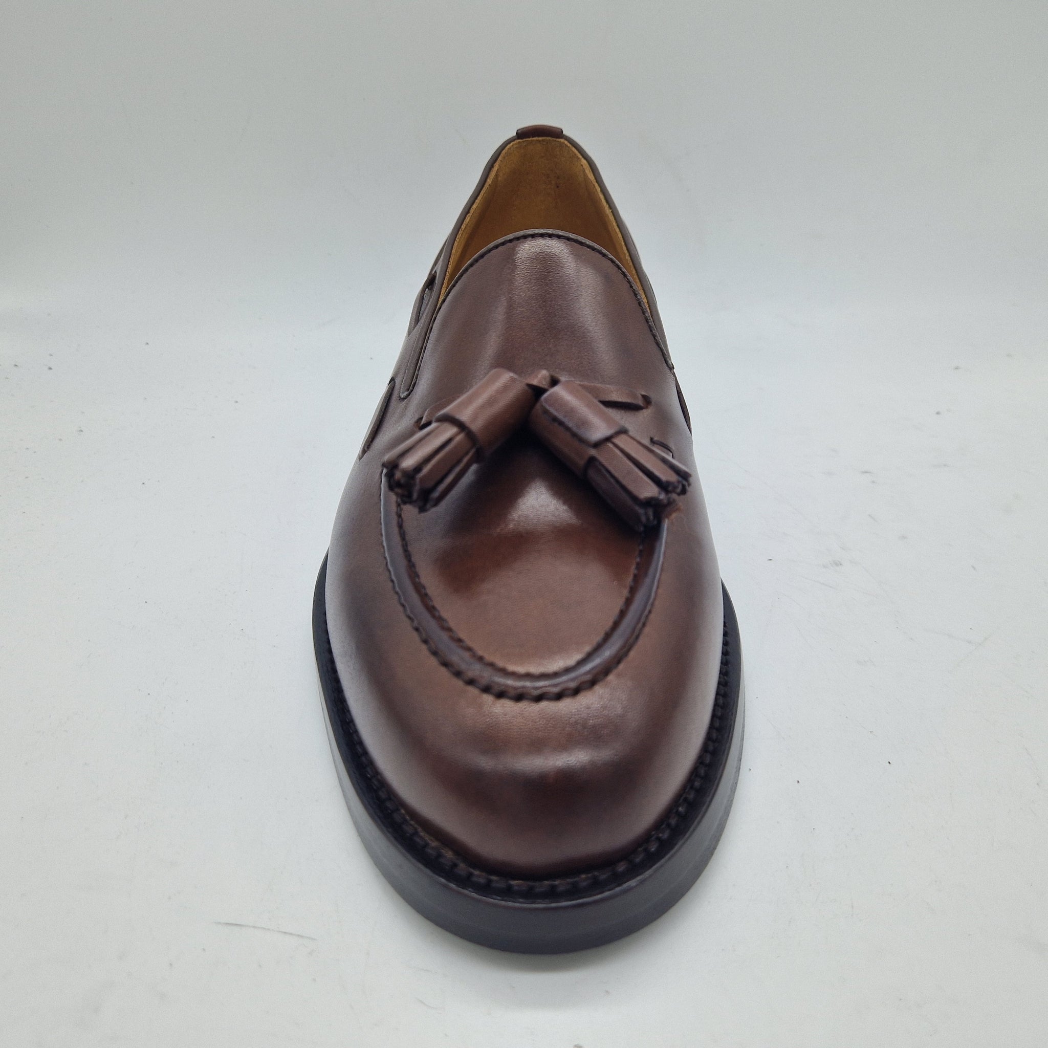 MOCASÍN D BORLAS EN PIEL CUERO MATE Y PISO CUERO