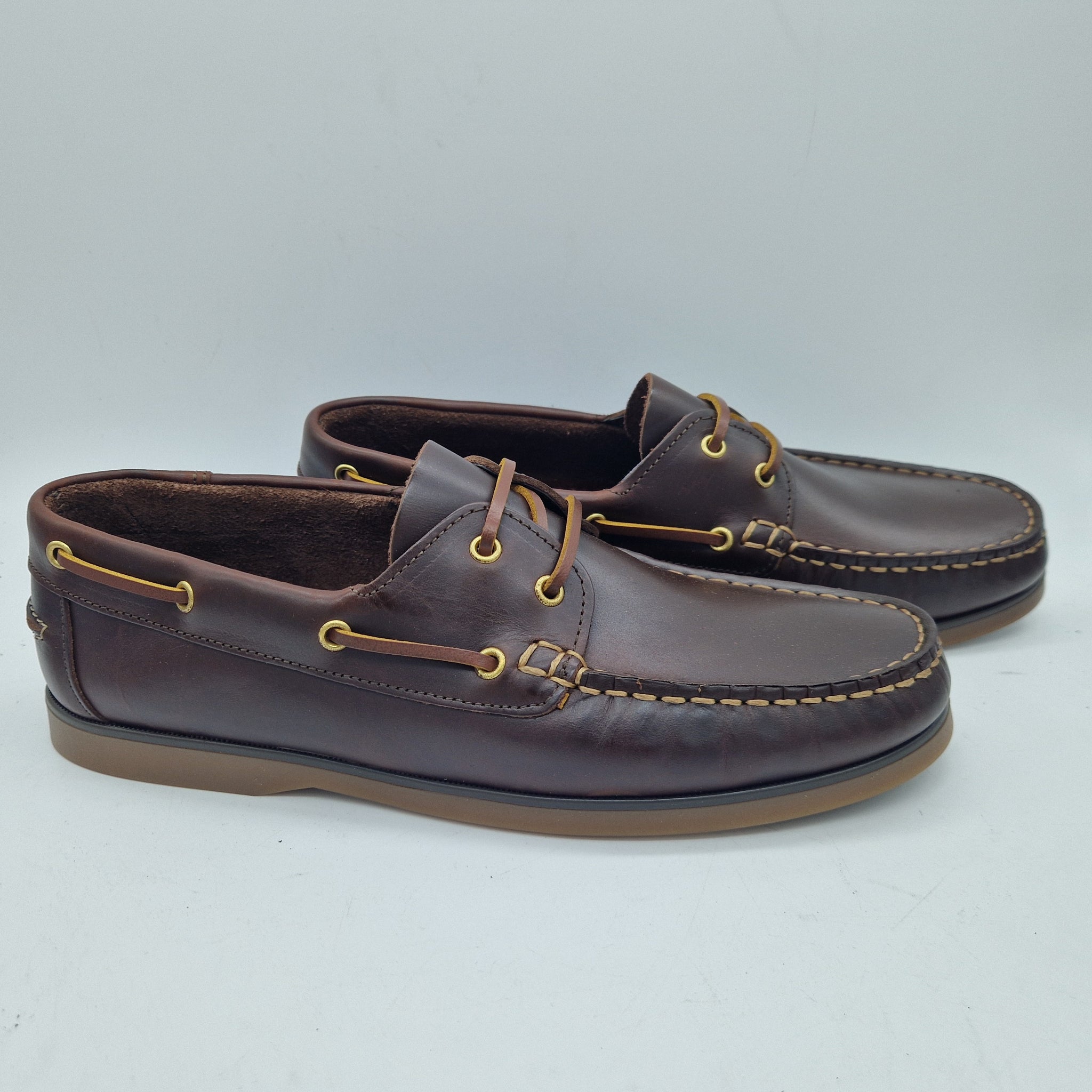 NAÚTICO EN PIEL ENGRASADA MARRÓN Y PISO FINO CARAMELO
