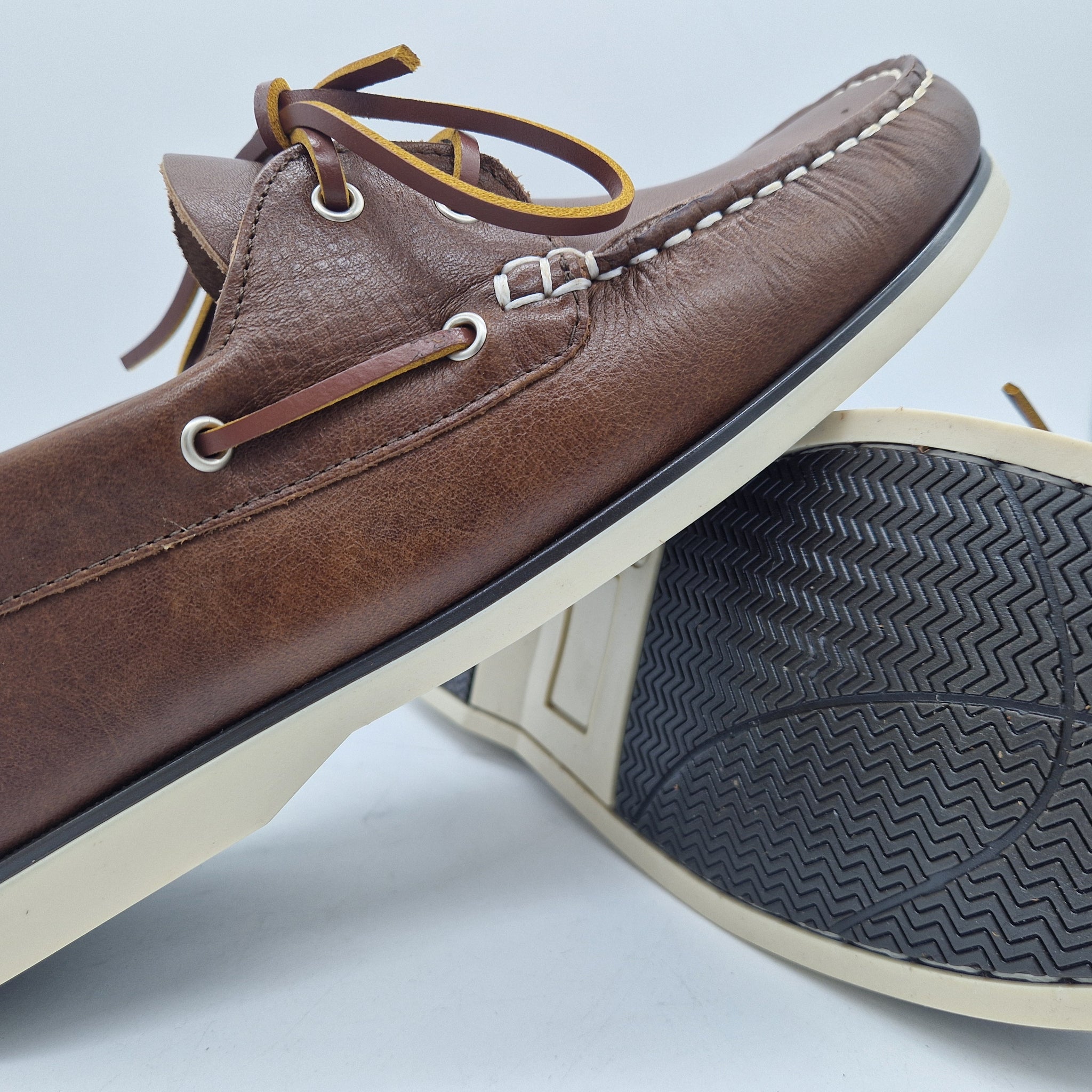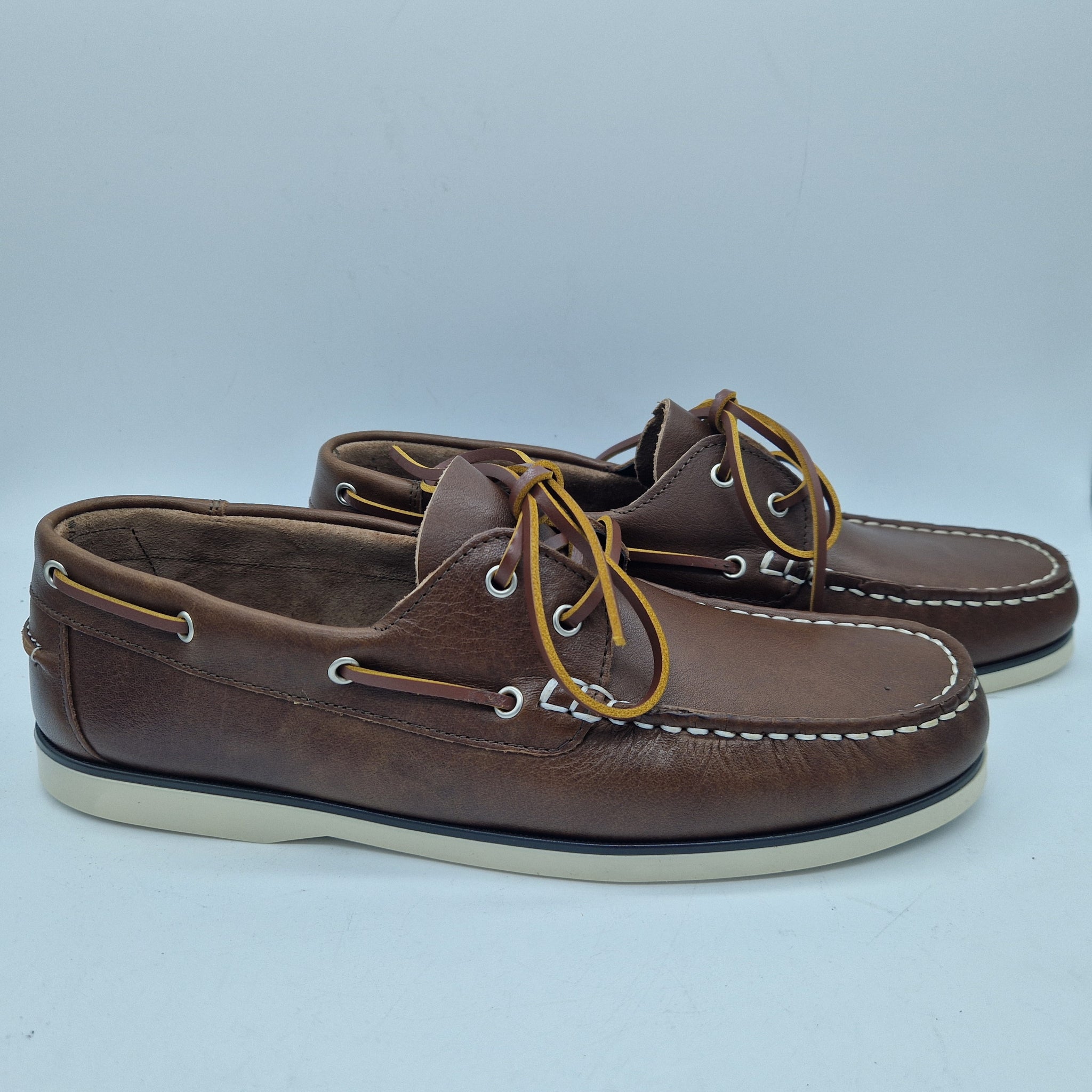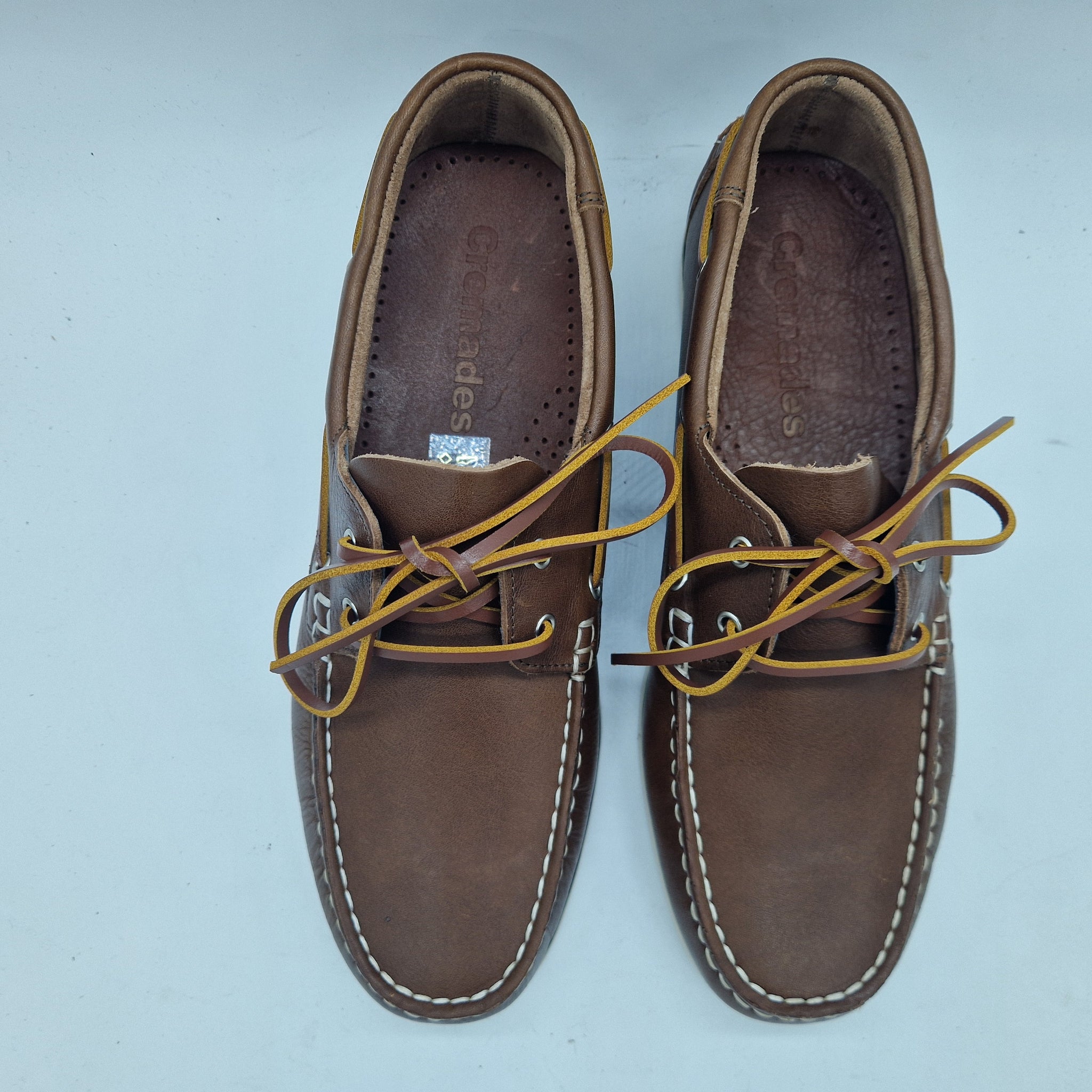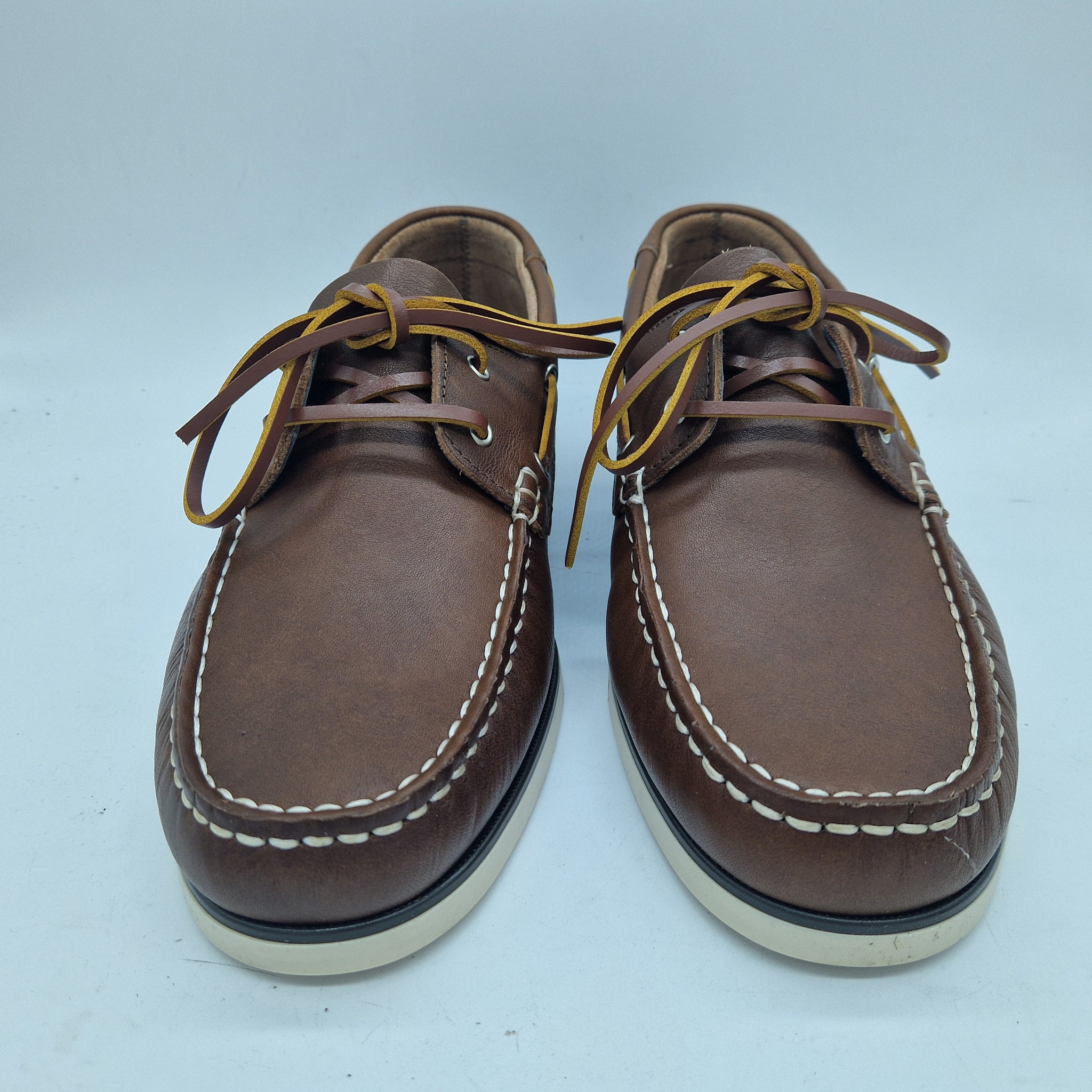 NAÚTICO EN PIEL MARRÓN Y PISO FINO BLANCO DE GOMA