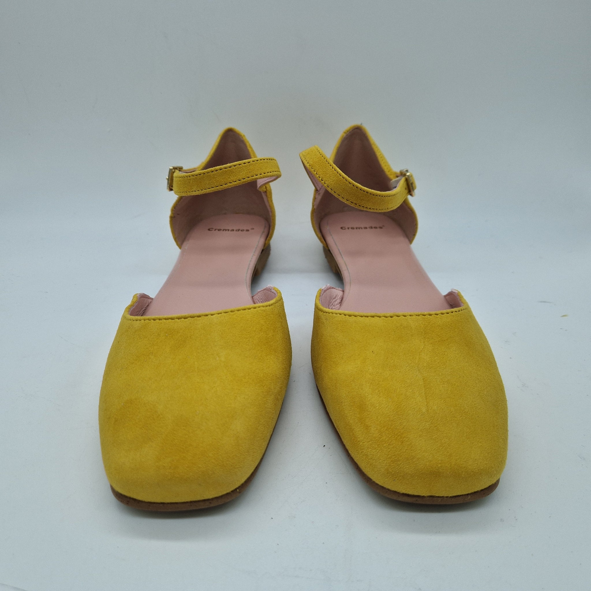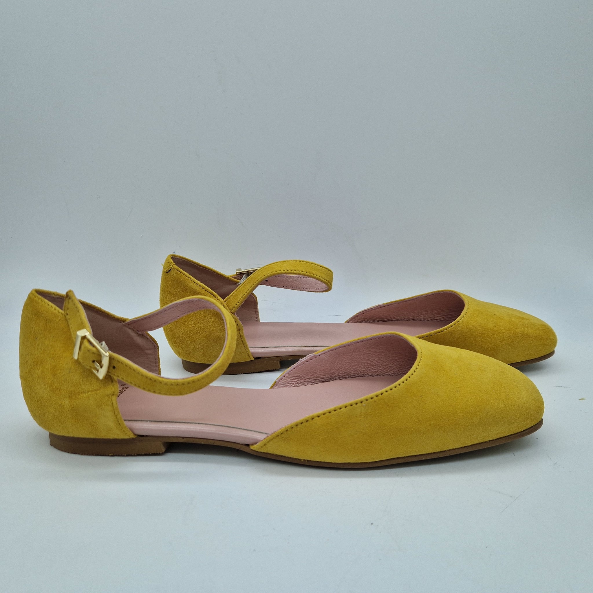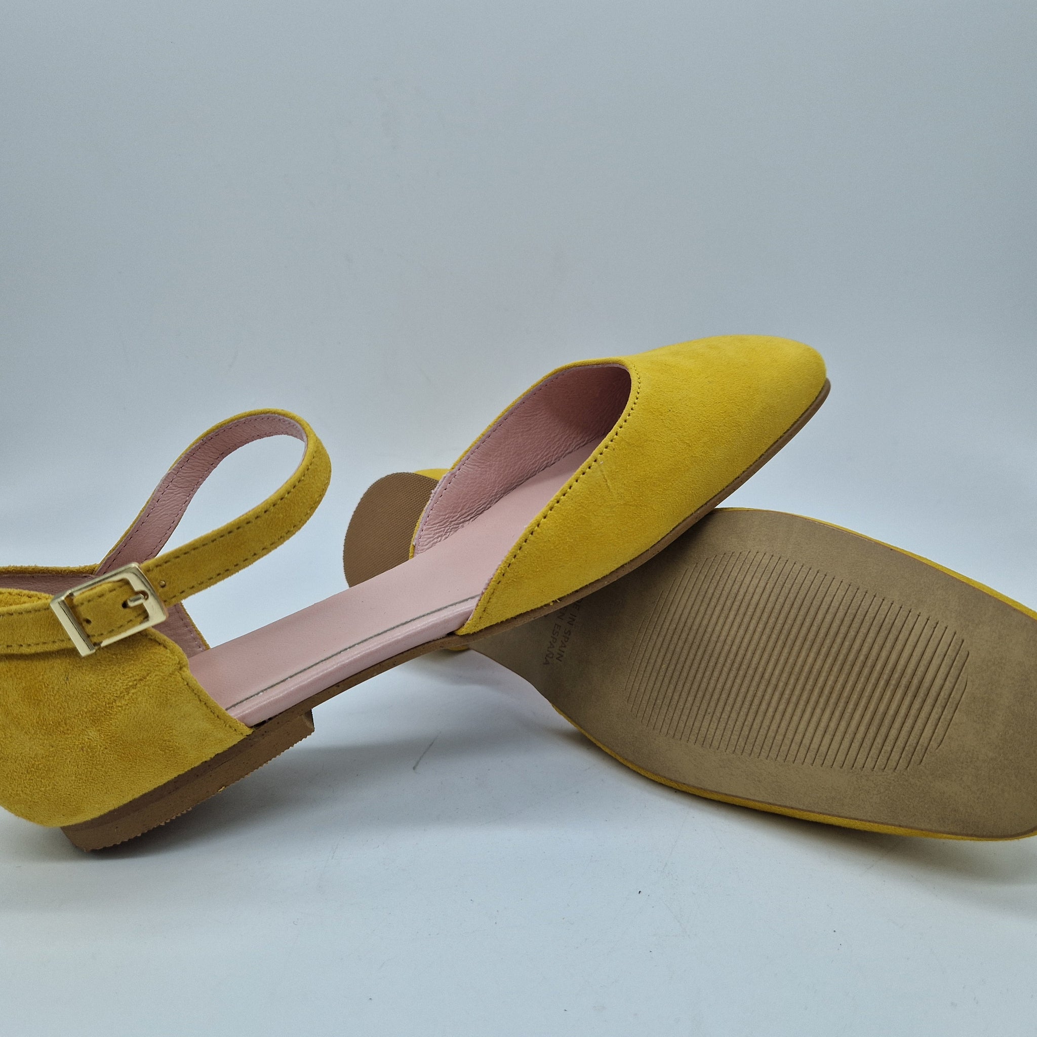 SANDALIA CON TRABAILLA EN ANTE MOSTAZA